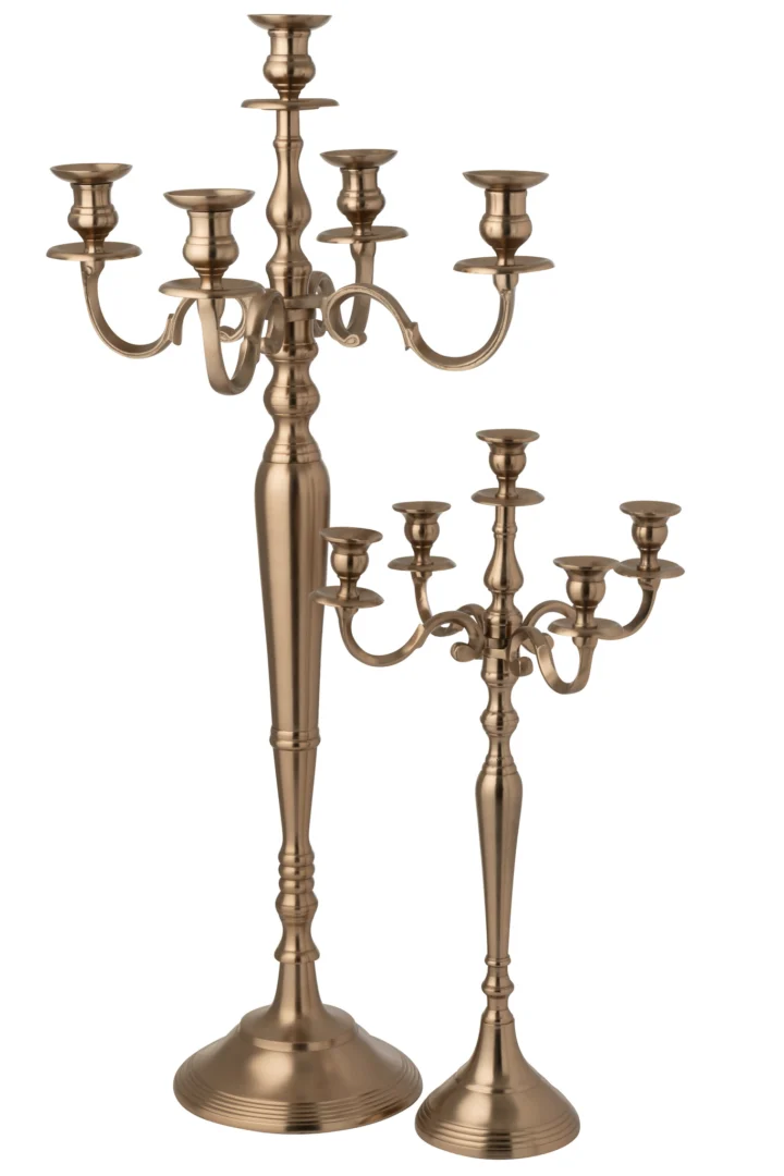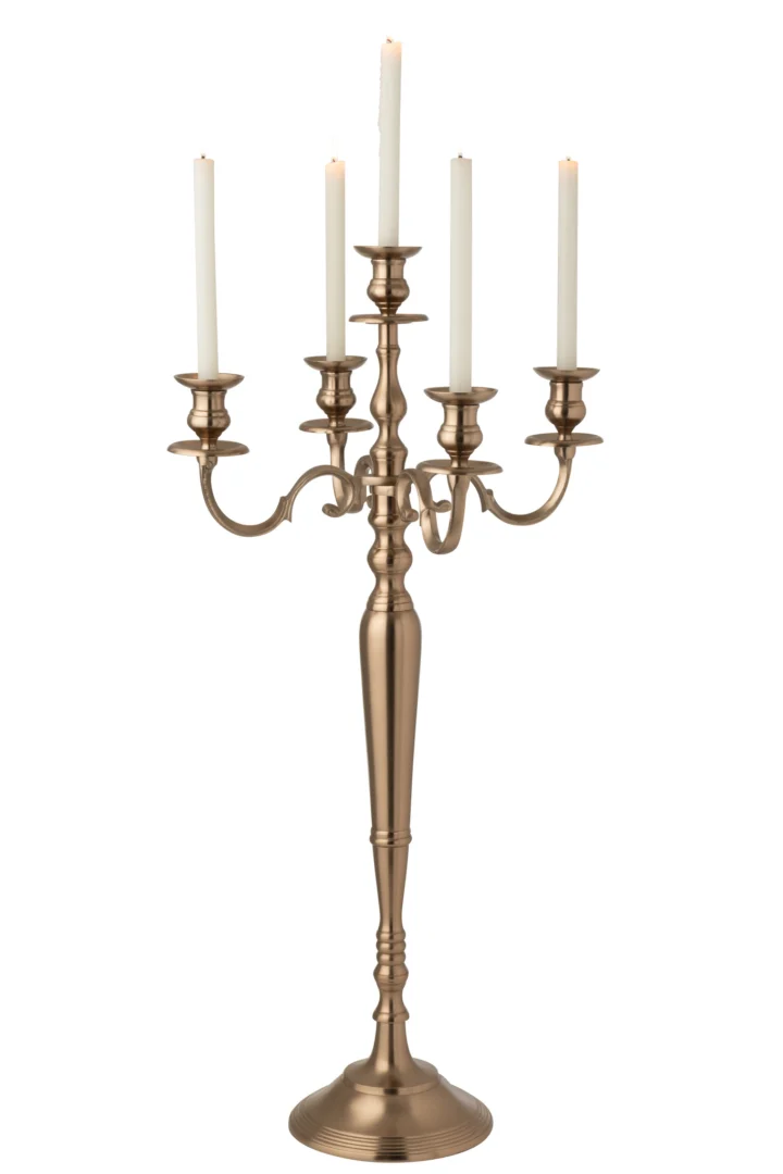 Stijlvolle, stevige kaarsenhouder met opvallende roségouden afwerking; minder geschikt voor kleine ruimtes. Aanrader voor moderne interieurs.