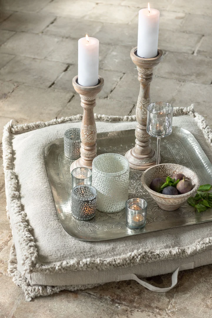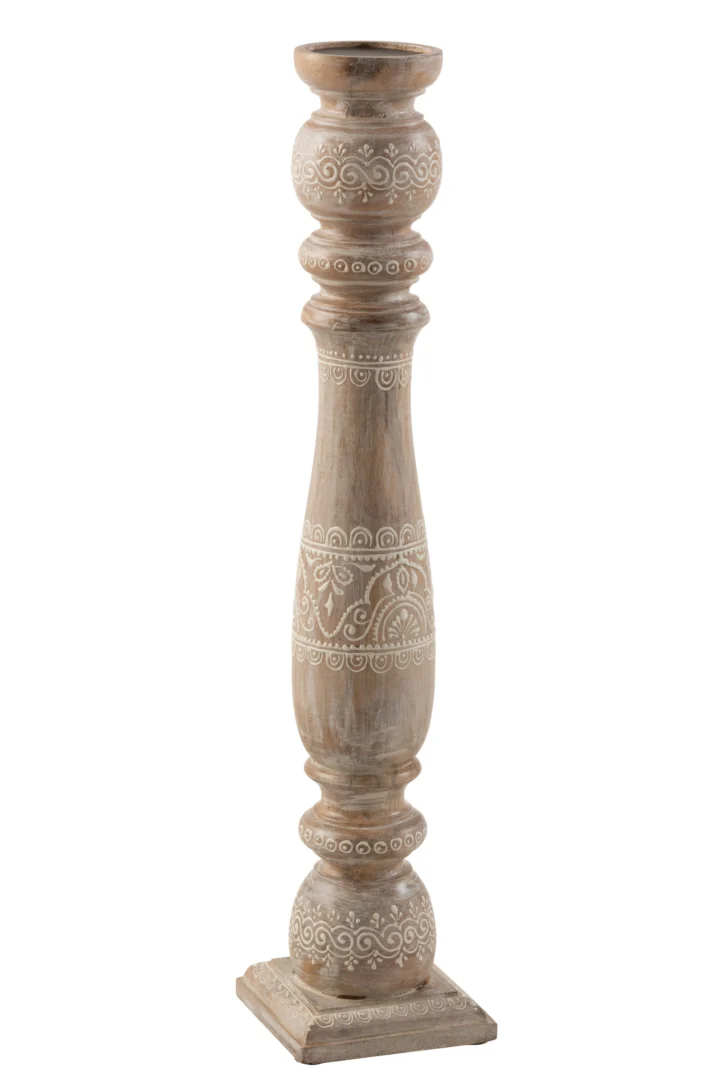 In een rustige zithoek voegt deze kaarsenhouder warmte en hoogte toe. Het stevige mangohout en de subtiele wittonen zorgen voor een tijdloos accent. Door het formaat is hij minder geschikt voor kleine oppervlakken. Ideaal voor liefhebbers van natuurlijke, elegante accenten. Een sfeervolle keuze.