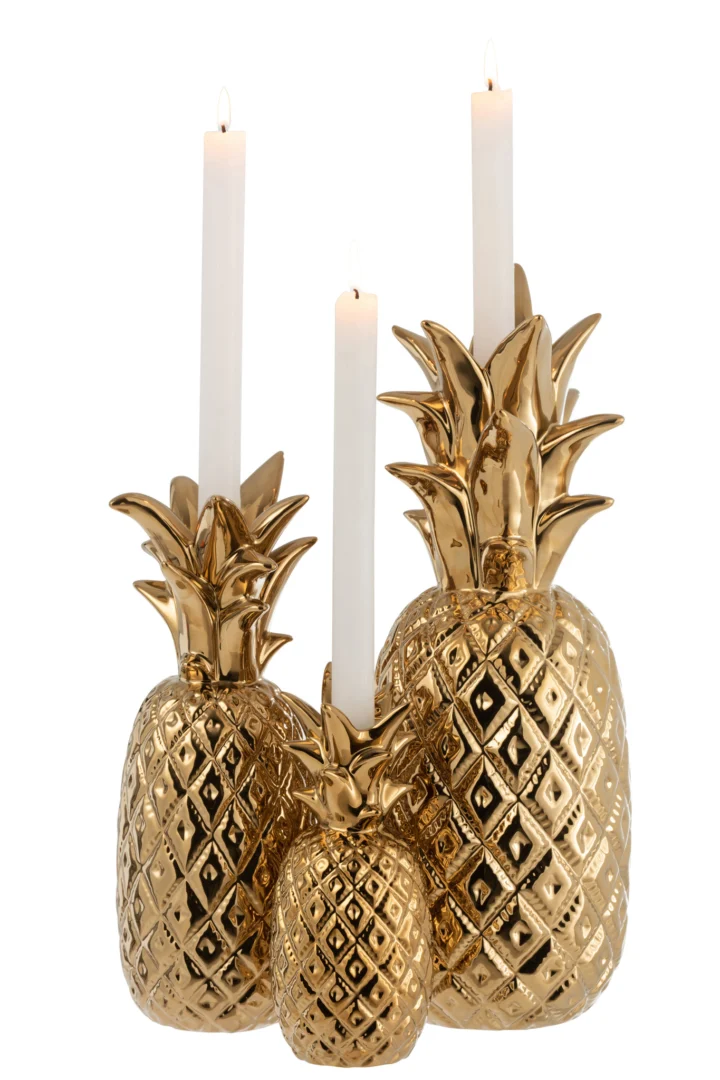 Kaarsenhouder Ananas Polyresin Goud Groot