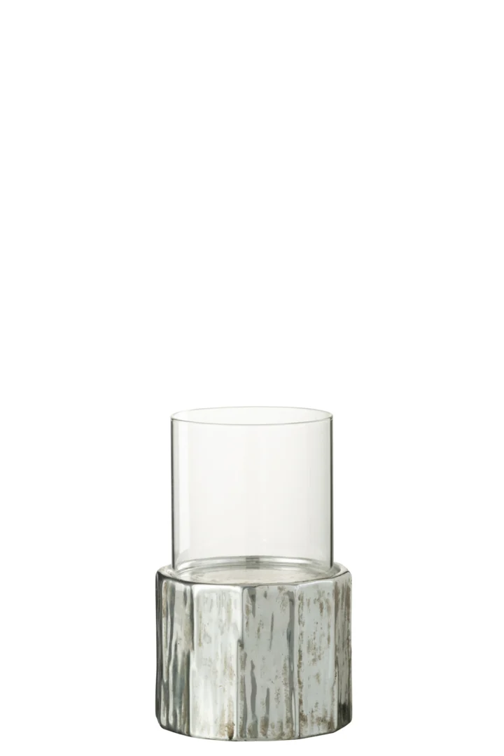• Zilverkleurige kaarsenhouder met glanzende glazuur