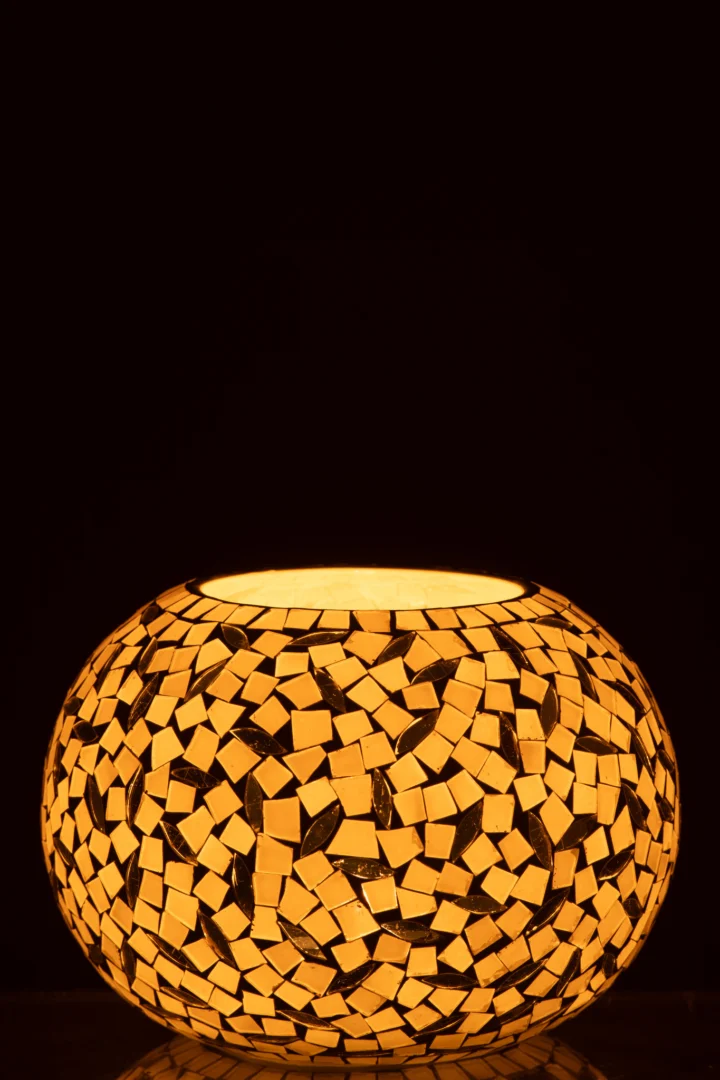 Tijdens een diner bij kaarslicht zorgt deze kaarsenhouder voor een zachte, sprankelende gloed. Het handgemaakte mozaïekglas oogt stijlvol en licht elegant op. Wel enigszins fragiel bij verplaatsen. Ideaal voor liefhebbers van verfijnde, sfeervolle woondecoratie. Een sfeervolle aanwinst.