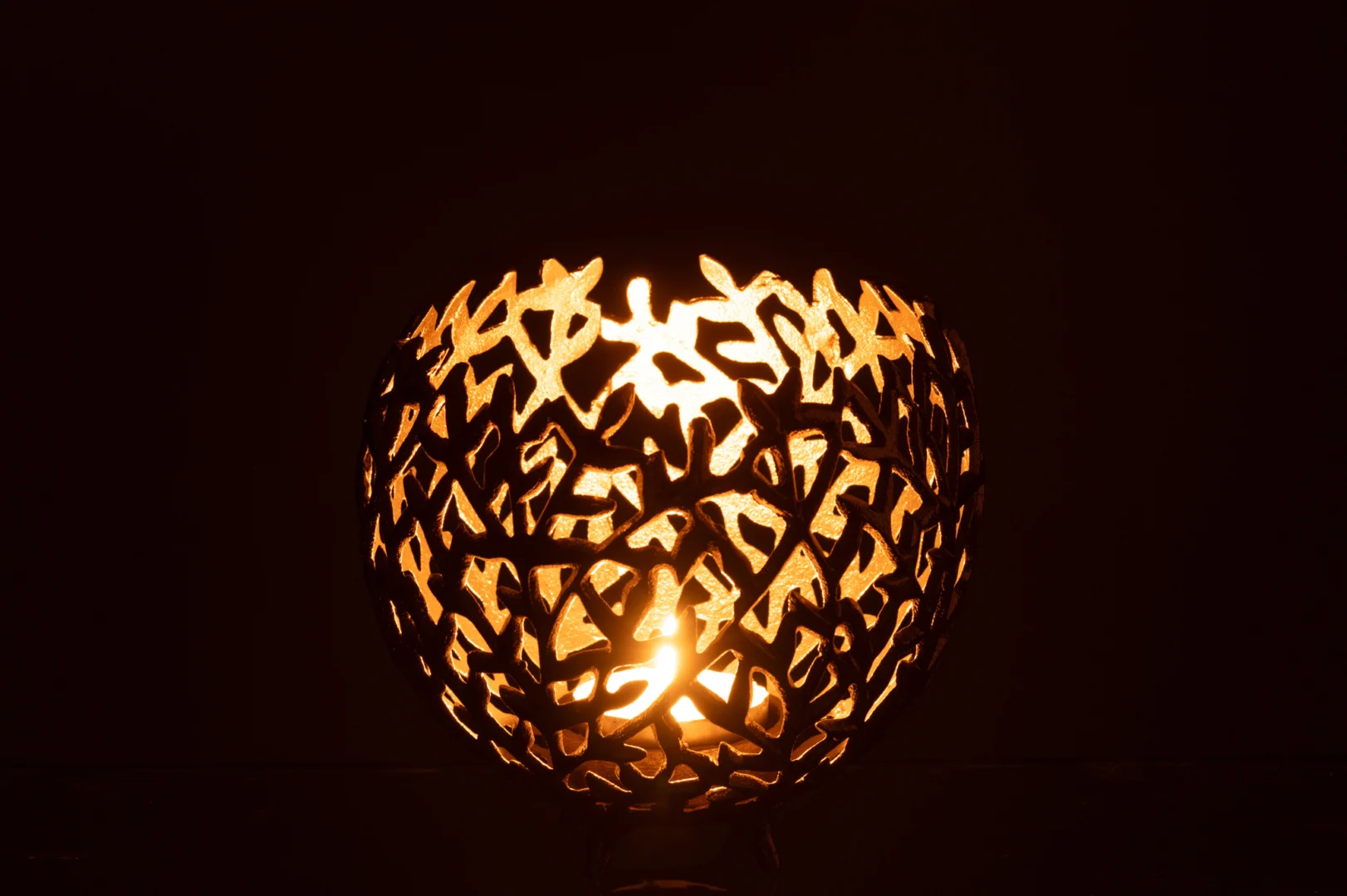 A: De afmetingen zijn circa 20 x 20 x 18 cm en het gewicht ca. 0,6 kg, waardoor hij licht verplaatsbaar maar voldoende stabiel is voor gebruik als centerpiece; voor extra bescherming en grip kun je vilt- of antislip-pads onderzetten op kwetsbare oppervlakken.