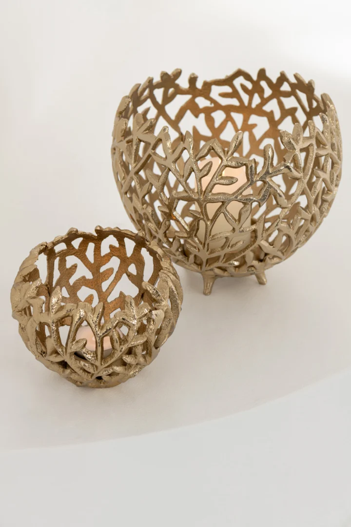 Deze kaarsenhouder voegt een vleugje luxe toe op een gedekte tafel of in een sfeervolle leeshoek. Het goudkleurige aluminium en het subtiele bladmotief springen in het oog. Wel wat instabiel bij oneffen oppervlakken. Ideaal voor liefhebbers van stijlvolle decoratie. Aanrader voor warme accenten thuis.
