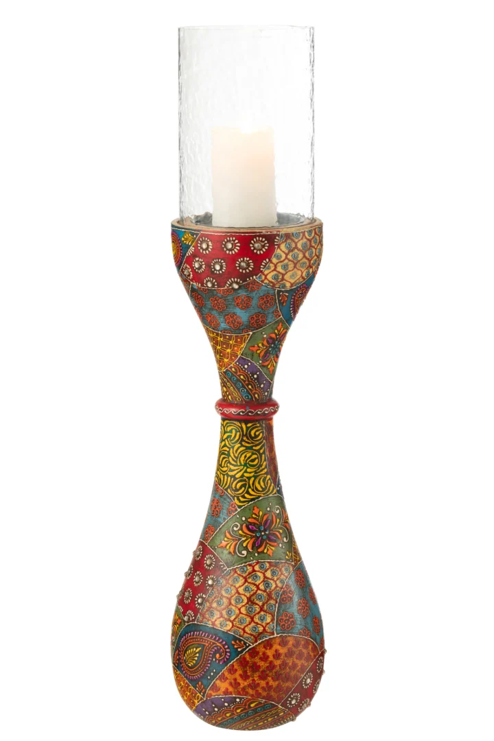 Breng direct warmte en sfeer in huis met deze hoge kaarsenhouder in natuurlijke houttinten, aangevuld met een subtiel glazen accent. Het slanke silhouet in mixkleur maakt hem tot een stijlvolle blikvanger voor elke kamer.