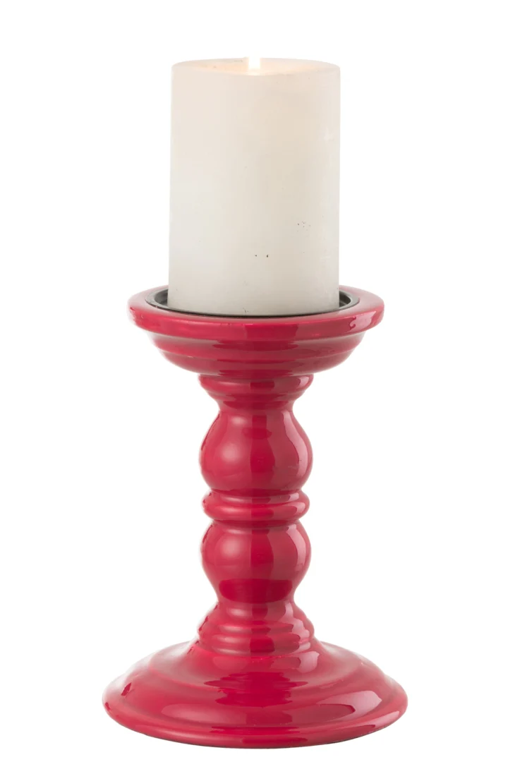 Ontdek een compacte fuchsia kaarsenhouder van J-Line, ca. 12,5 bij 17,5 centimeter. Gemaakt van 85% mangohout, 10% glazuur en 5% ijzer, weegt ca. 0,4 kg. Perfect op eettafel, vensterbank of dressoir voor een warme, kleurvolle sfeer (Zomer 2025).