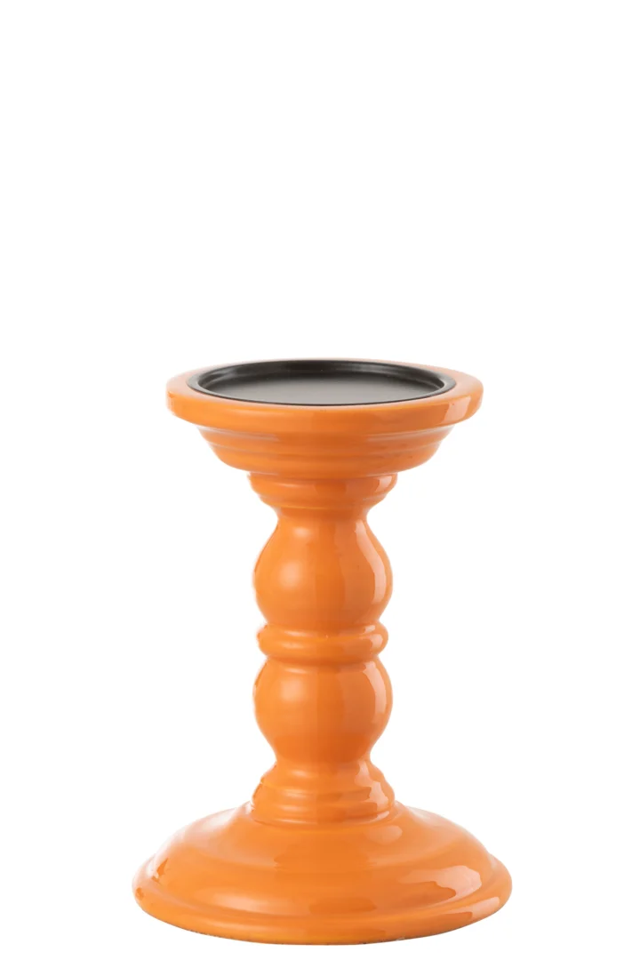 Deze kaarsenhouder komt goed tot zijn recht op een dressoir of bijzettafel voor sfeervolle verlichting. Het warme hout en geglazuurde oranje tint geven karakter, terwijl het stevige ijzeren accent stabiliteit biedt. Minder geschikt voor moderne, strakke interieurs. Ideaal voor liefhebbers van natuurlijke woonaccessoires. Degelijke keuze voor subtiele decoratie.