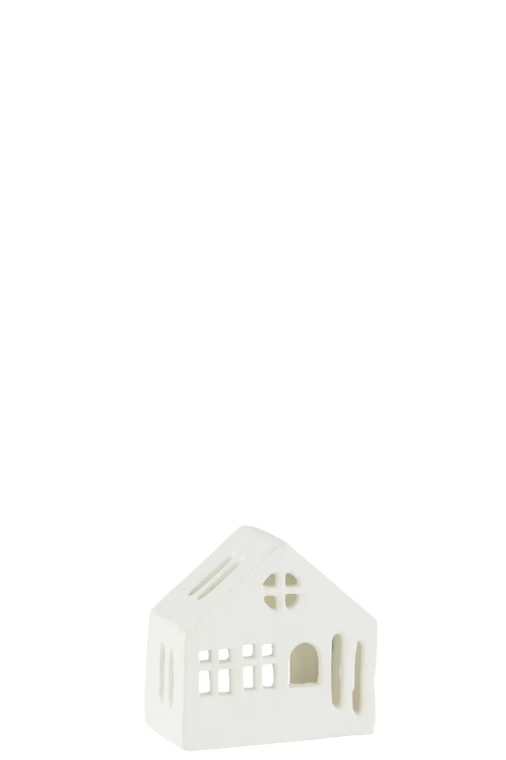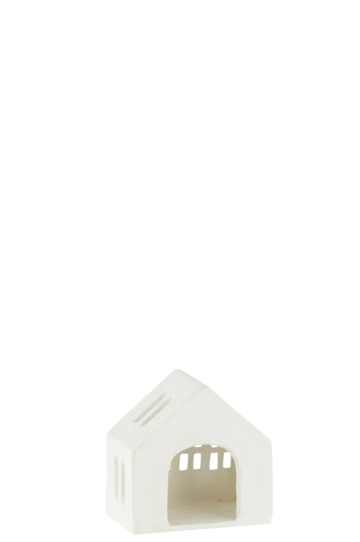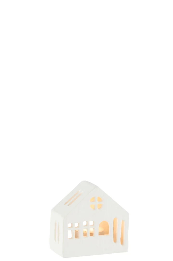Zet in een handomdraai een warme sfeer neer met deze stijlvolle kaarsenhouder van J-Line in fris wit. Dankzij het compacte formaat (h x b x l: 9 x 5 x 9 cm) past hij overal: op de vensterbank, salontafel of het dressoir.