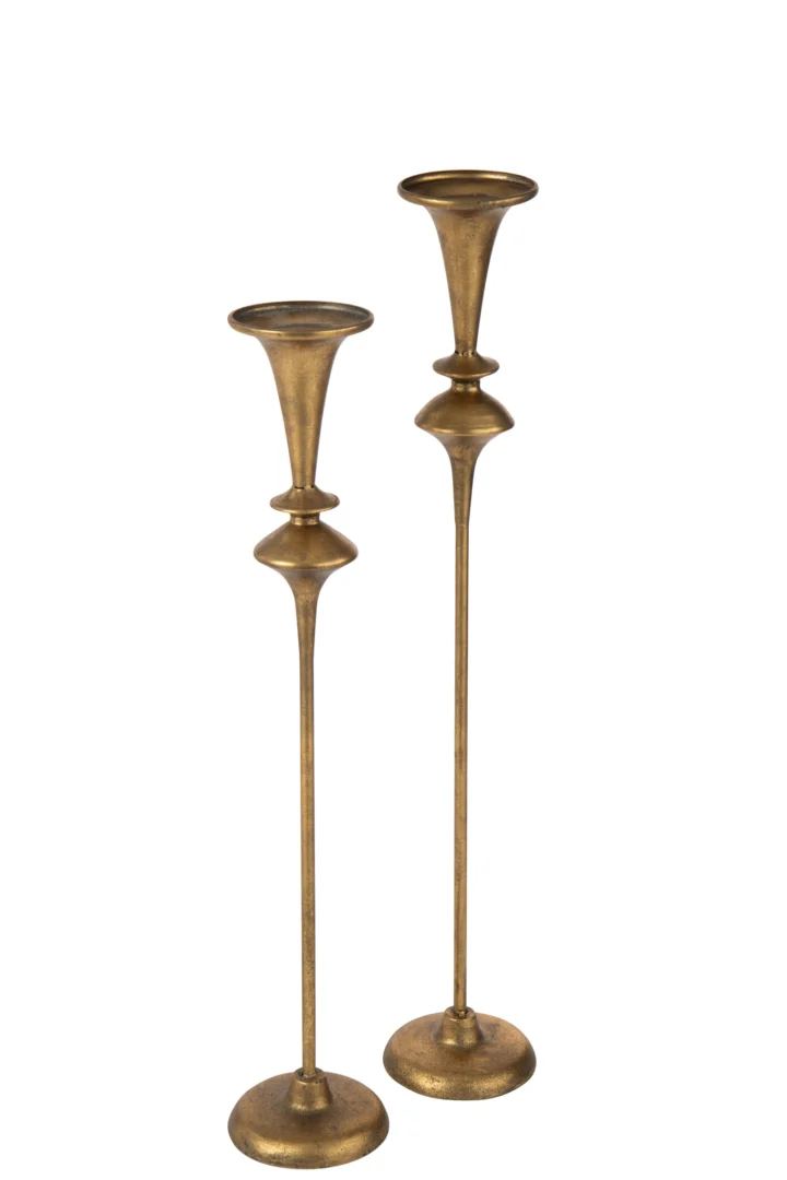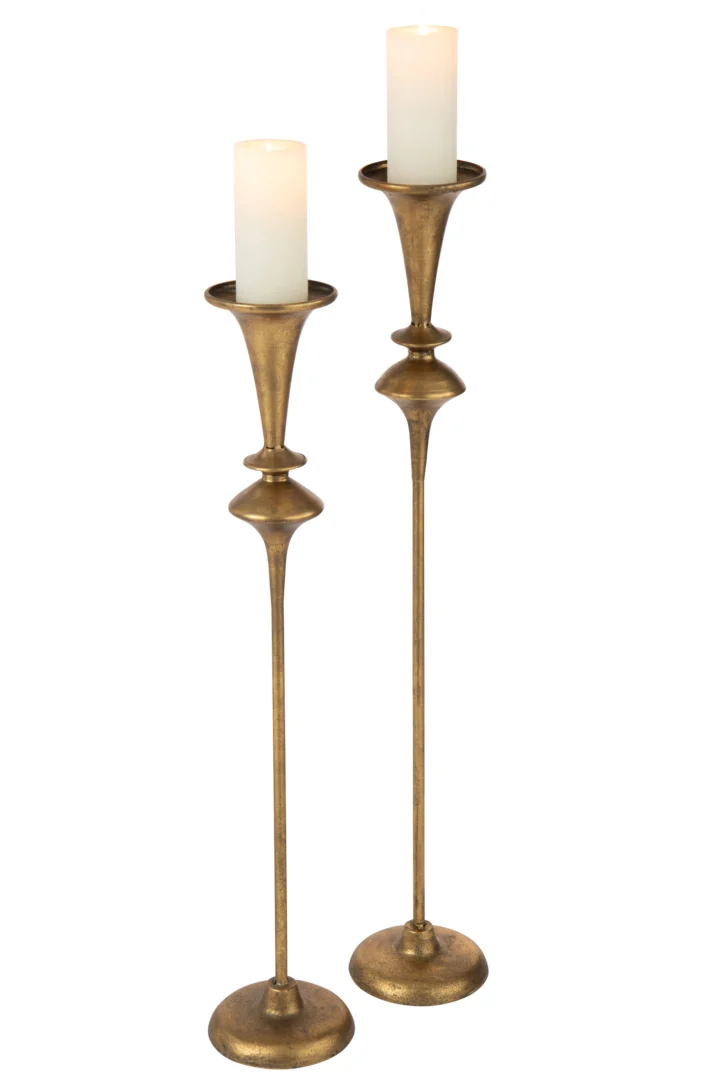 Deze stijlvolle gouden kaarsenhouder komt goed tot zijn recht op een dressoir of in een hoek van de kamer. Het stevige ijzer en de stabiele voet zorgen voor veiligheid en duurzaamheid. Door het formaat minder geschikt voor kleine ruimtes. Prima keuze voor liefhebbers van opvallende decorstukken.