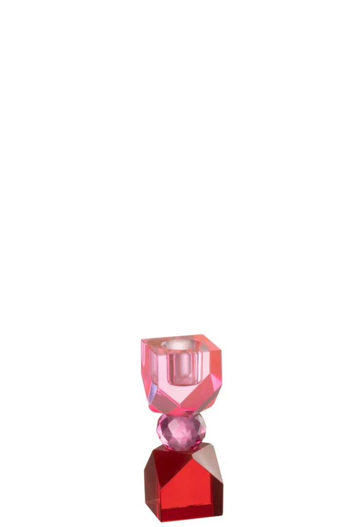 Breng warme sfeer en subtiele glans in huis met deze roze kandelaar/kaarsenhouder van kristal. De slanke vorm (10 cm hoog, 4 x 4 cm) laat het licht prachtig spelen en maakt elk moment net even bijzonderder.