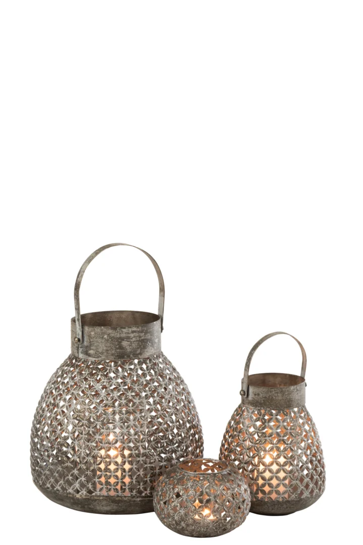 Materialen & verzorging: ijzer en glas. Afnemen met een zachte, droge doek; geen agressieve schoonmaakmiddelen. Plaats op een vlakke, hittebestendige ondergrond en laat brandende kaarsen niet onbeheerd. Afmetingen: 26 x 26 x 28 cm. Gewicht: 2 kg. Levering binnen 2-3 dagen.