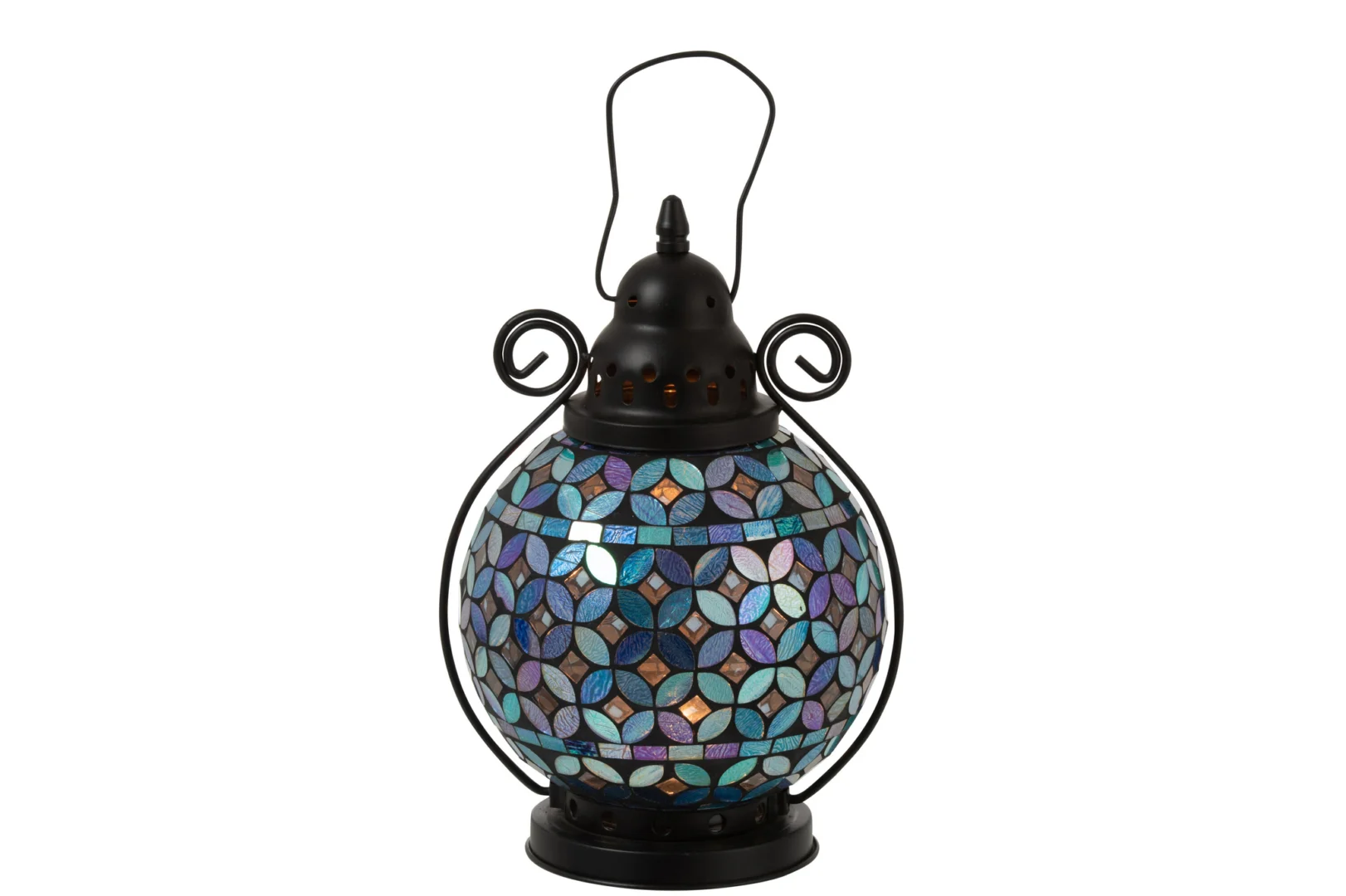 Kaarsenhouder Lantaarn Mozaïek Bal Glas Metaal Blauw Paars