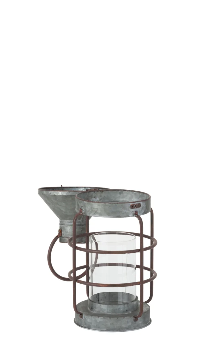 Voeg direct warmte en karakter toe aan je interieur met deze hoge kaarsenhouder in chique grijs/greige. De slanke 40 cm hoogte en het subtiele spel van glas en zink maken hem een blikvanger op elke tafel of dressoir.