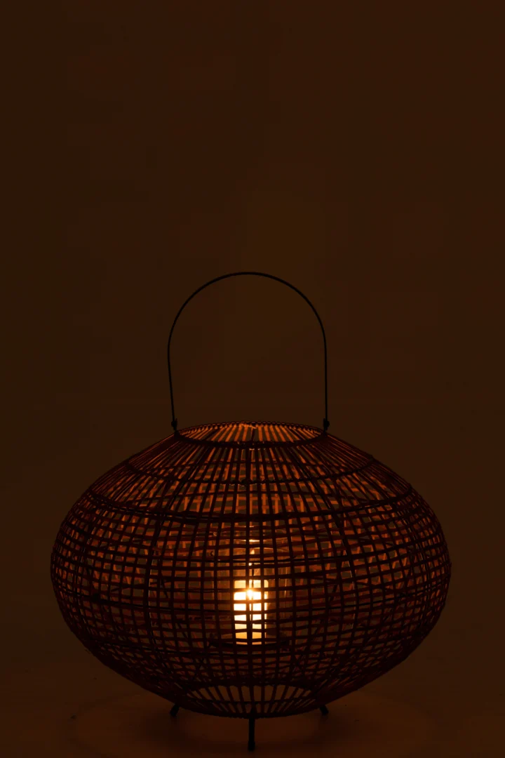 Zet dit grote windlicht op de vloer in woonkamer, hal of overkapte veranda voor direct gezellig licht en een mooi schaduwspel door het vlechtwerk. Werkt met een grote stompkaars of veilige LED-kaars. Ook mooi als duo naast een dressoir of bij de zithoek voor een stijlvol statement.