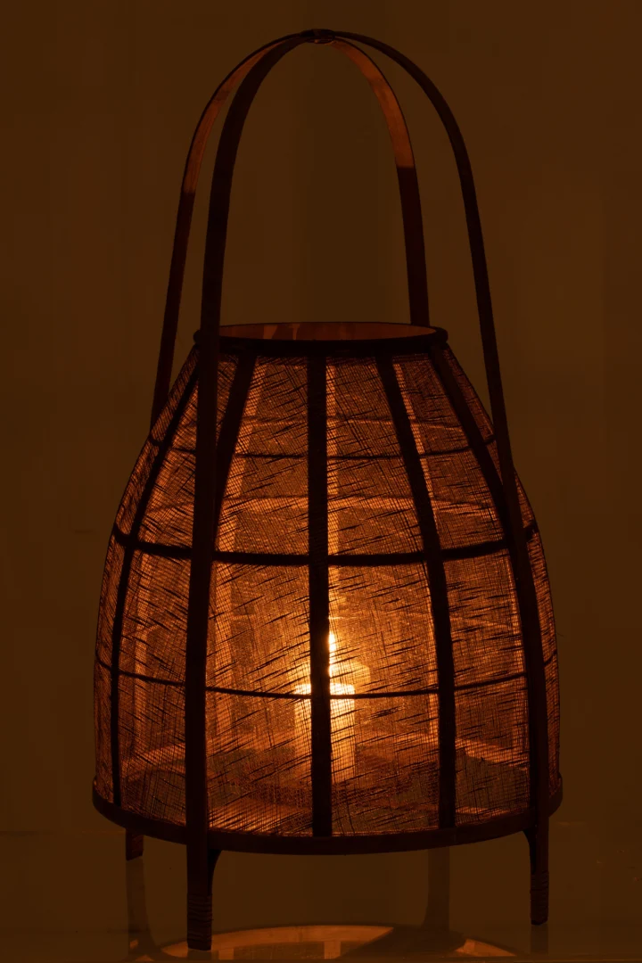 Deze lantaarn voegt sfeervolle verlichting toe aan een overdekt terras tijdens een rustige avond. Het gebruik van bamboe en jute geeft een warme, natuurlijke uitstraling. Door het formaat wat onhandig bij kleine ruimtes. Ideaal voor liefhebbers van rustieke decoratie. Aan te raden bij voldoende plek.