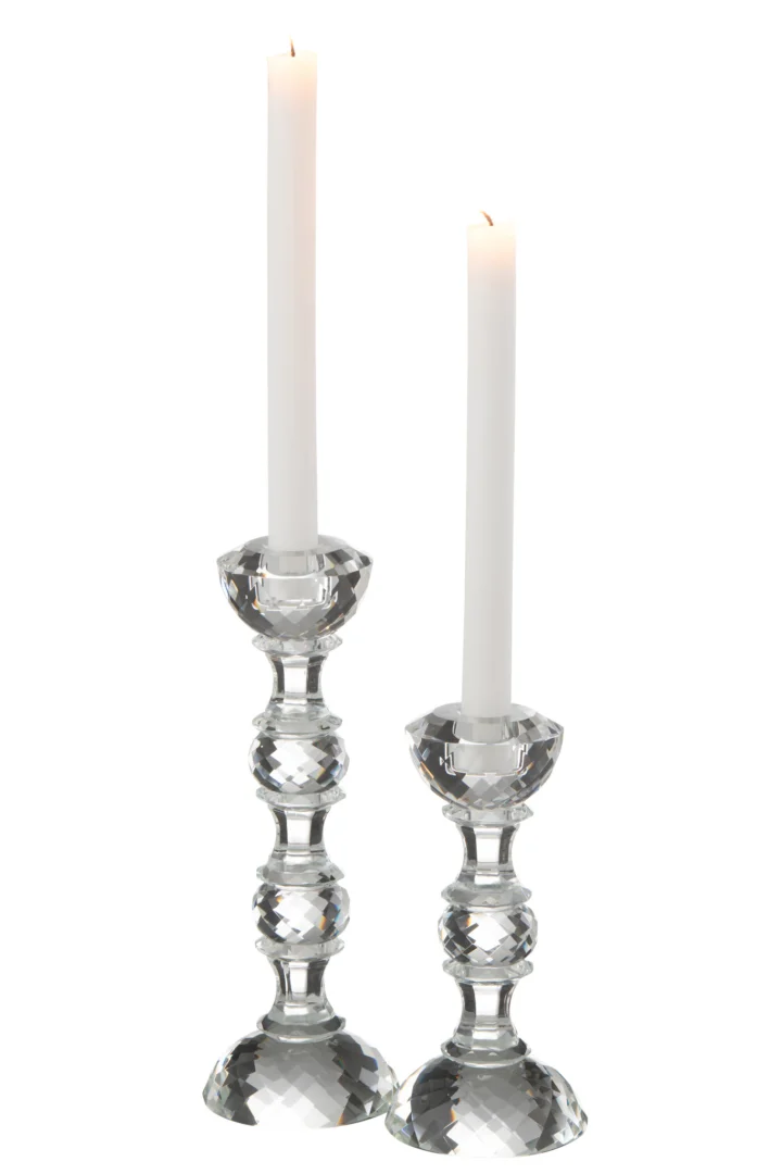 Ontdek een slanke kandelaar van 100% kristal (transparant), J-Line, Winter 2024; het glas vangt kaarslicht en creëert warme, luxe sferen. Afmeting 9 bij 9 bij 26 centimeter. Perfect op eettafel, vensterbank of dressoir. Gewicht 0,75 kg.