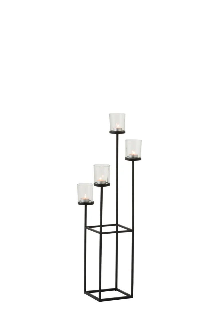 Breng instant sfeer in huis met deze elegante kaarsenstandaard in diep zwart. Dankzij de royale hoogte van 77 cm wordt hij moeiteloos het stijlvolle middelpunt van je woonkamer, hal of eettafel.