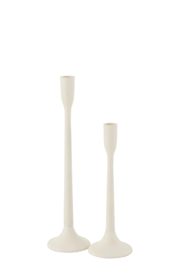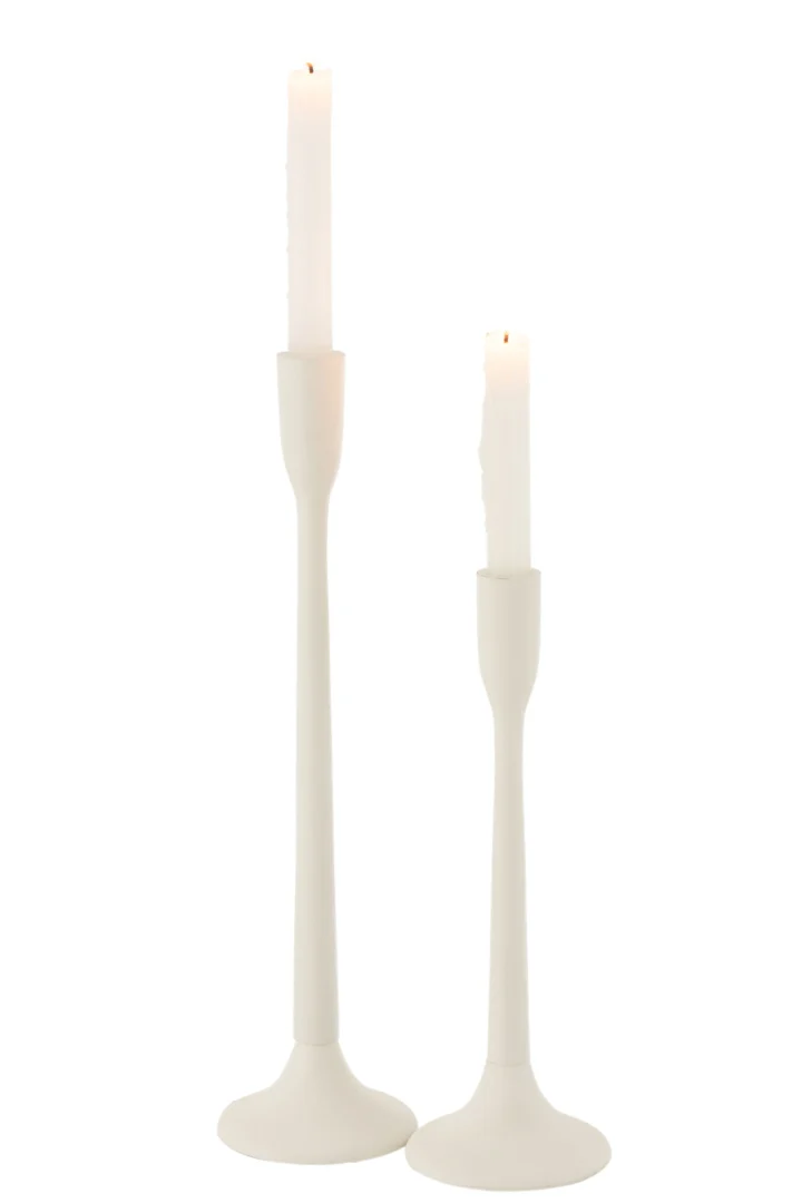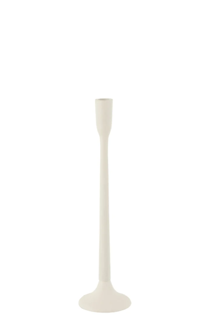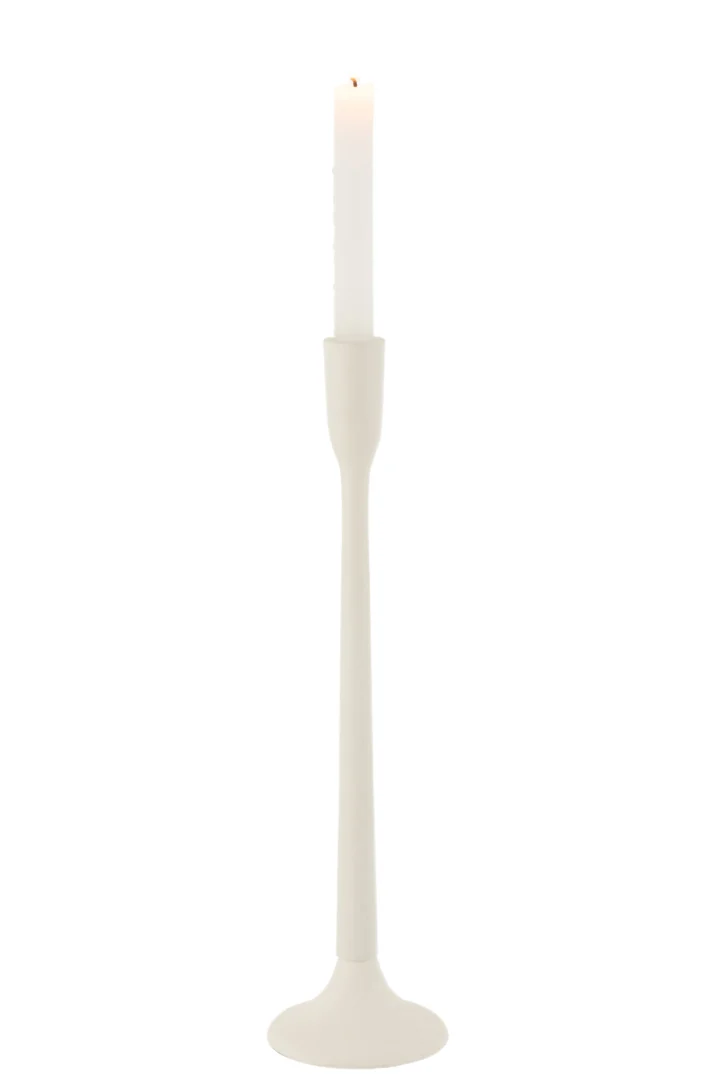 Breng warmte en stijl in huis met deze elegante kaarsenhouder van wit aluminium. Met zijn slanke hoogte van 41 cm is het een subtiele blikvanger op tafel, dressoir of vensterbank.
