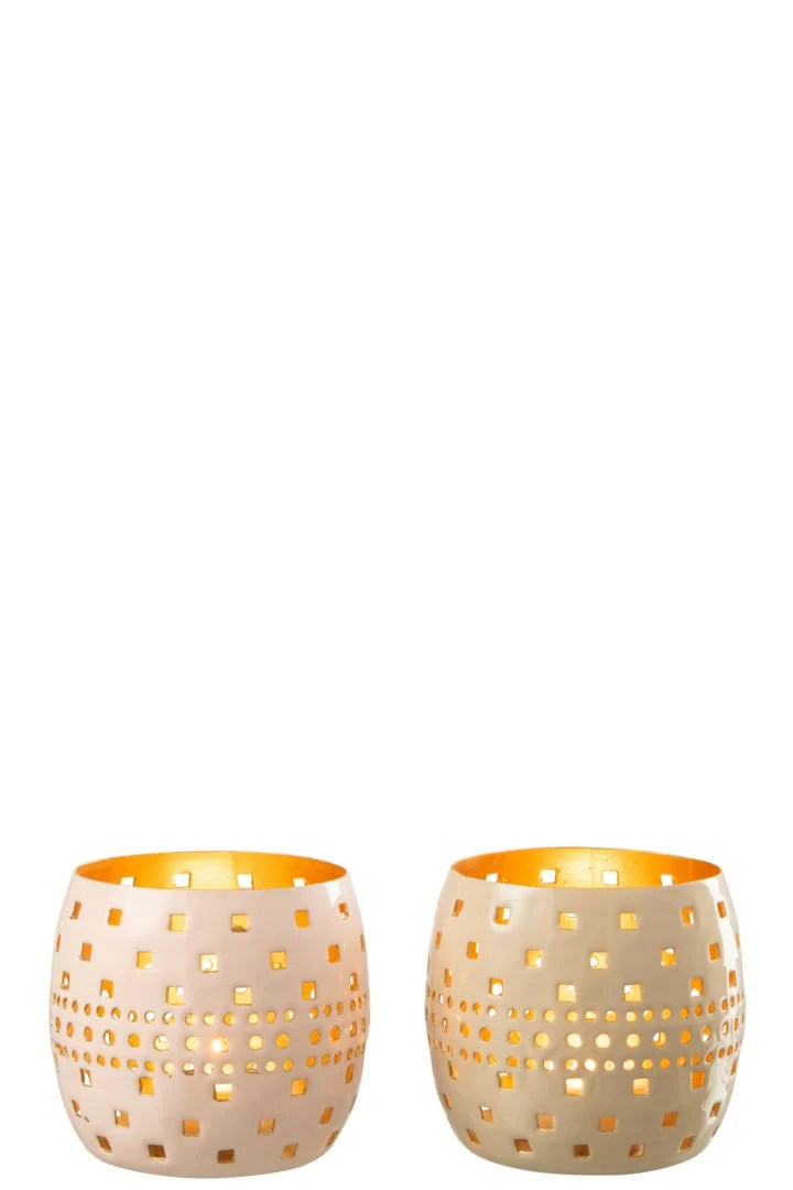 Geef je interieur een warme, zachte gloed met deze set van twee kaarsenhouders in lichtroze met een subtiele beige nuance. Perfect voor op tafel, vensterbank of dressoir en een stijlvolle touch uit de J-Line Summer 2023 collectie.