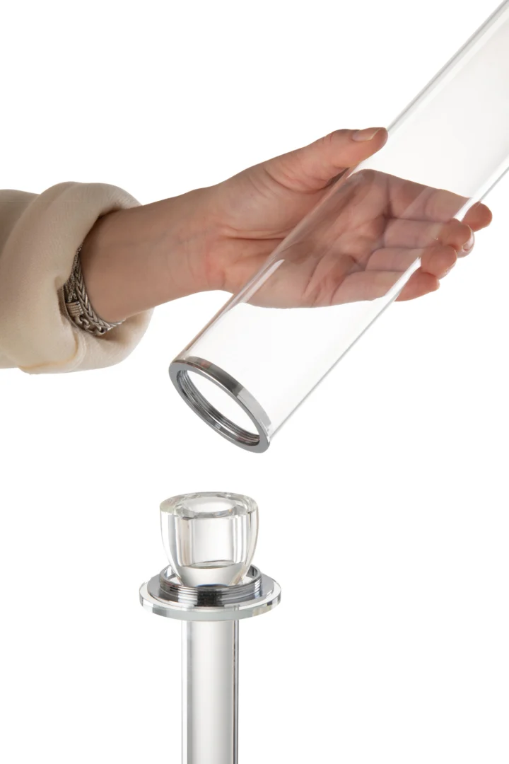 Breng warme sfeer in huis met deze hoge, transparante kaarsenhouder uit de Winter 2024 collectie. Het slanke design van glas met een subtiel metalen accent past moeiteloos in elk interieur en laat het kaarslicht prachtig tot leven komen.
