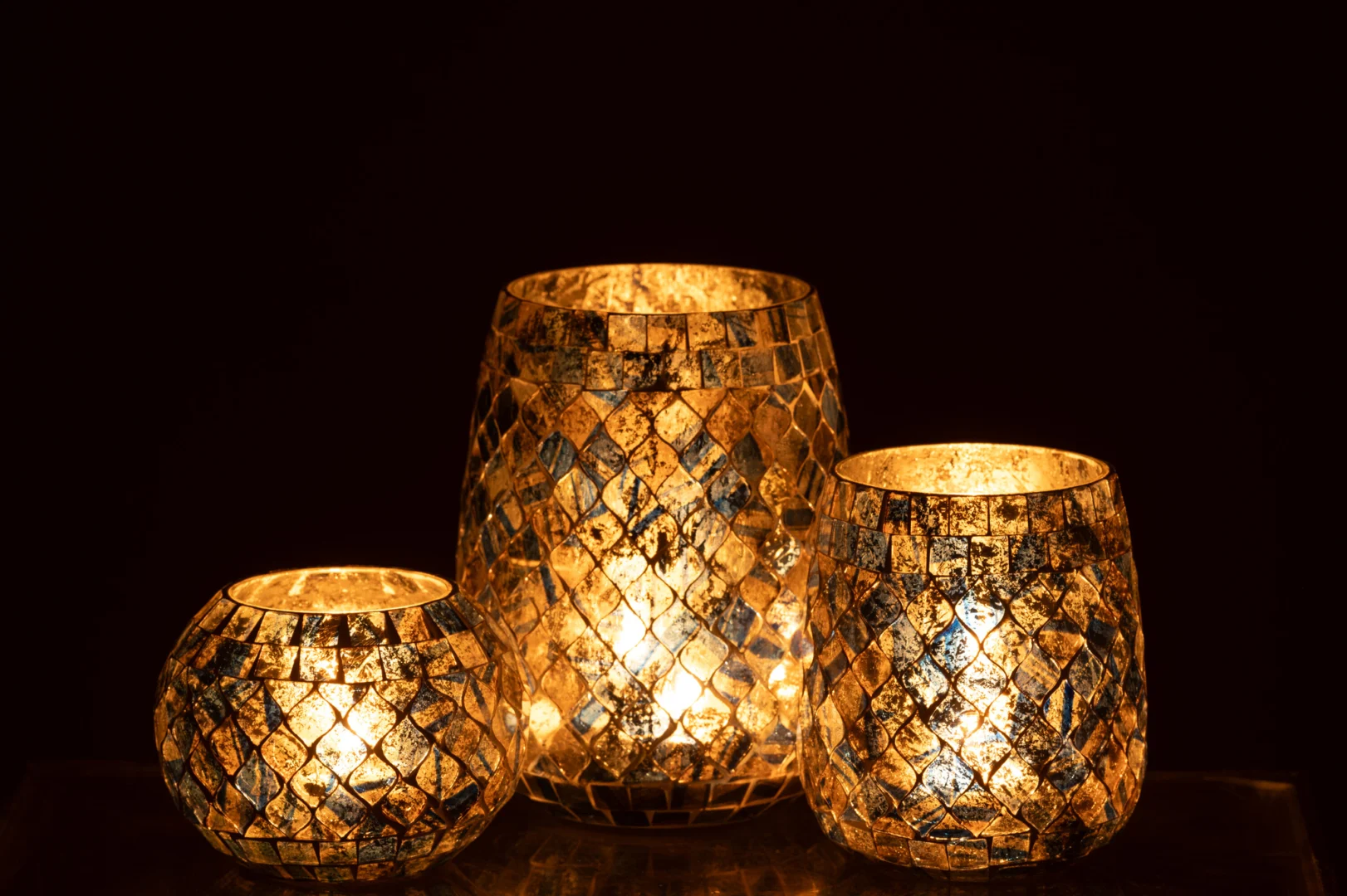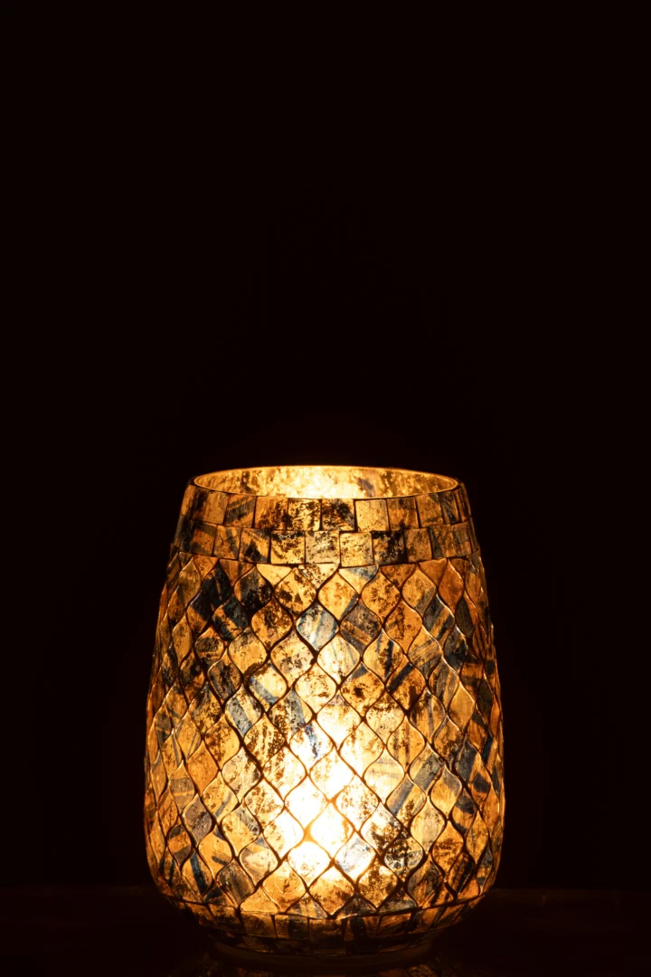 Tijdens een rustige winteravond zorgt deze glazen kaarshouder voor sfeervolle, warme verlichting. De mozaïekstructuur weerkaatst het kaarslicht prachtig en de blauw-grijze tint past in diverse interieurs. Wel iets kwetsbaar bij verplaatsen. Geschikt voor liefhebbers van stijlvolle seizoensdecoratie. Zeker een aanrader.