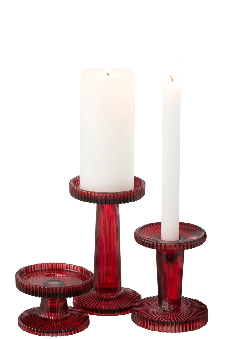 - Dieprood glas dat kaarslicht prachtig versterkt