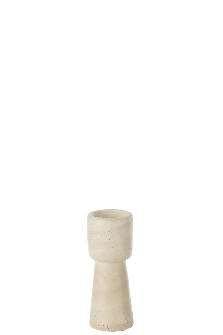 Breng warme sfeer in huis met deze elegante kaarsenhouder in room-/ivoortint. Gemaakt van massief cement, combineert hij een stoere textuur met een verfijnde uitstraling. Met zijn slanke hoogte van 15 cm en compacte 6 x 6 cm voet past hij moeiteloos op tafel, vensterbank of dressoir.