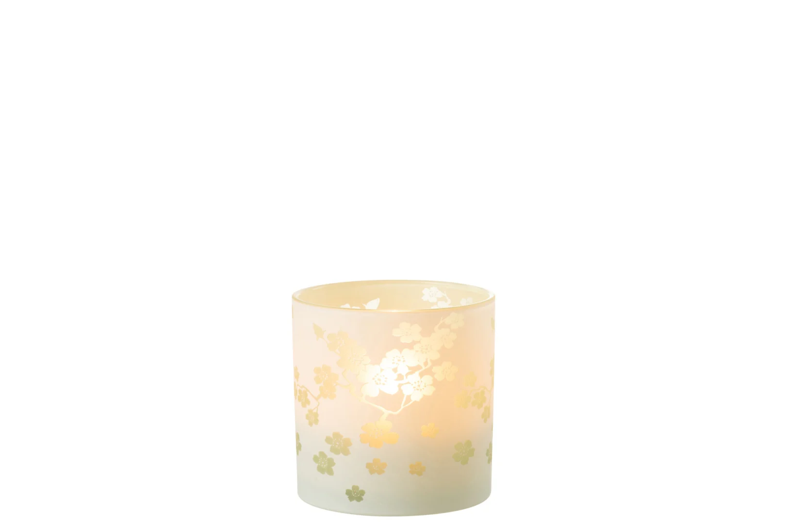 Materiaal: 100% glas. Onderhoud: afnemen met een zachte, droge of licht vochtige doek; niet geschikt voor vaatwasser of schurende middelen. Plaats op een vlakke, hittebestendige ondergrond. Laat brandende kaarsen nooit onbeheerd en houd buiten bereik van kinderen en huisdieren. Kleuraccenten kunnen licht variëren door de gemengde tinten.