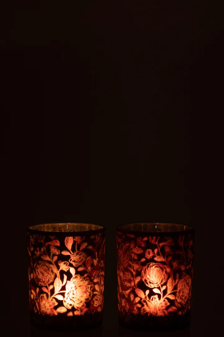 Kaarsenhouder Orkaan Bloemen Glas Paars Zilver Set 2