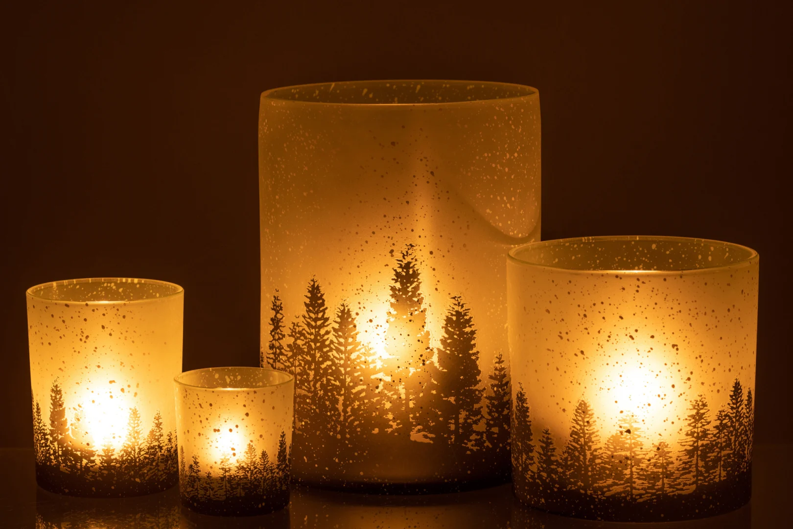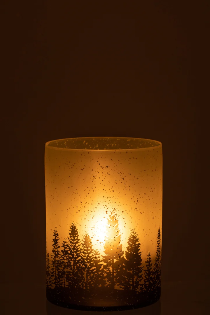 Breng warmte en sfeer in huis met deze glazen kaarsenhouder uit de Hiver 2023-collectie. De gemengde kleurtonen vangen het vlamlicht prachtig op en geven je interieur meteen karakter.
