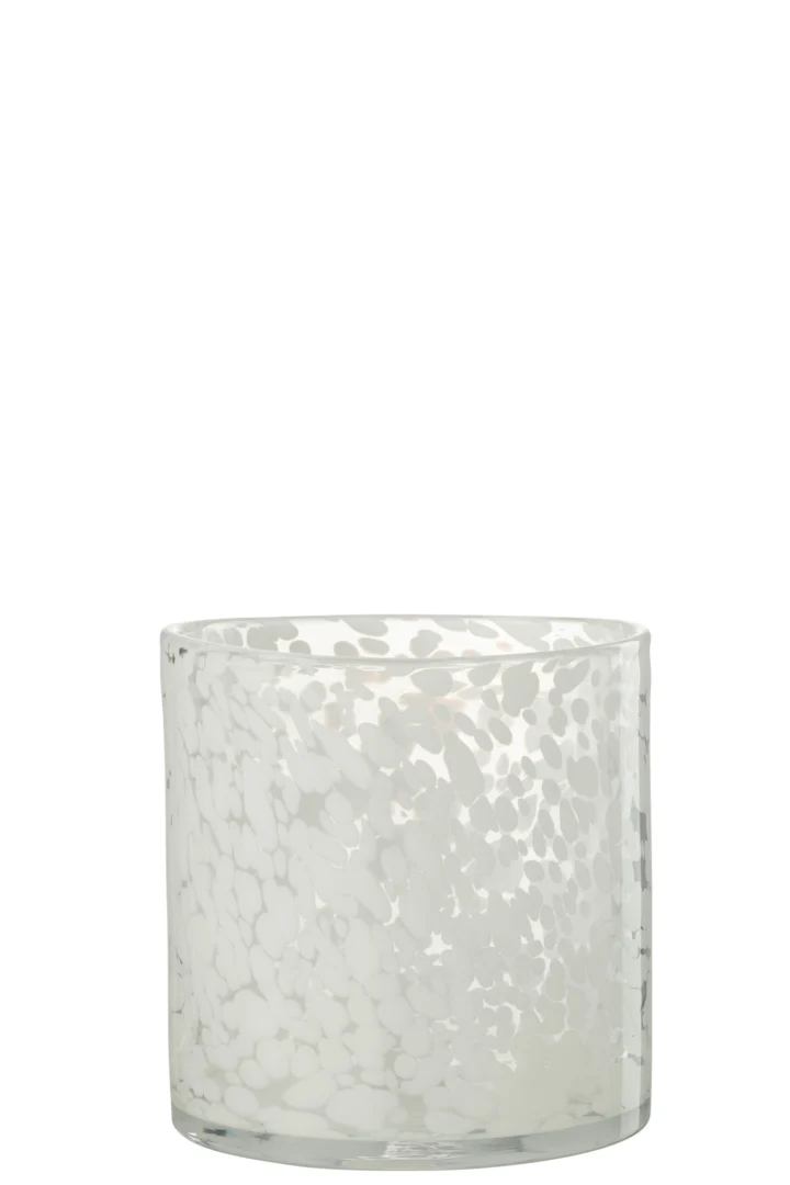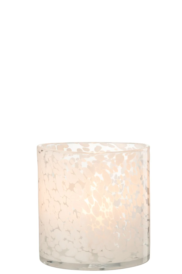 Creëer een knusse, rustgevende gloed op je salontafel, dressoir of vensterbank. Het dikke glas verzacht het licht en voorkomt verblinding, terwijl de neutrale kleur subtiel luxe toevoegt. Door de ruime opening wissel je kaarsen in een handomdraai.
