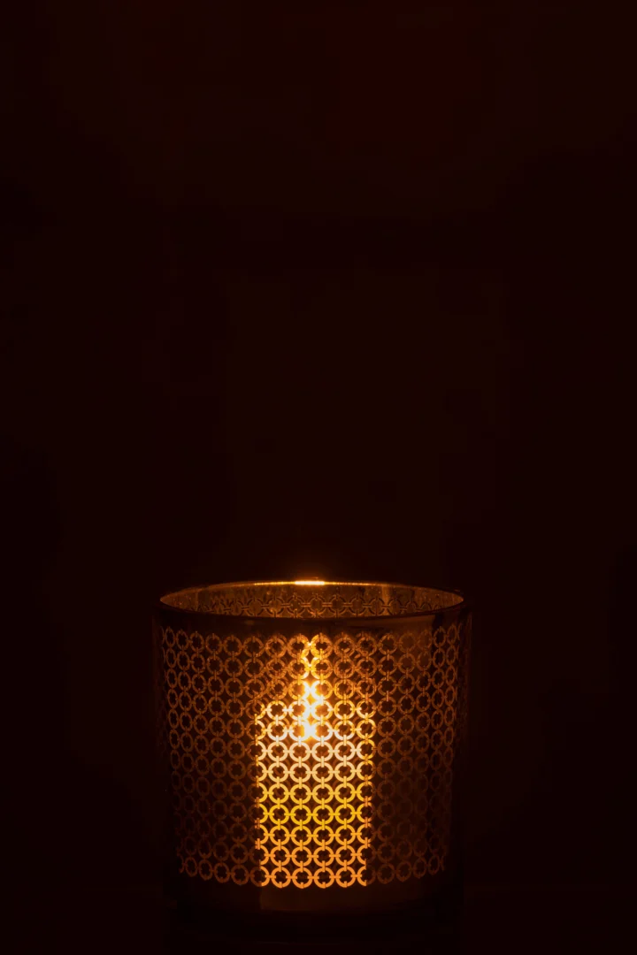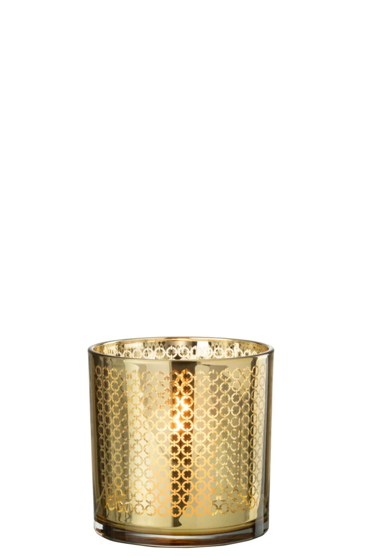 Tijdens een diner bij kaarslicht zorgt deze glazen kaarsenhouder voor een warme sfeer. Het goudkleurige glas weerkaatst mooi en het compacte formaat past makkelijk op tafel. Wel is het materiaal kwetsbaar. Ideaal voor liefhebbers van elegante, sfeervolle accenten. Aanrader.