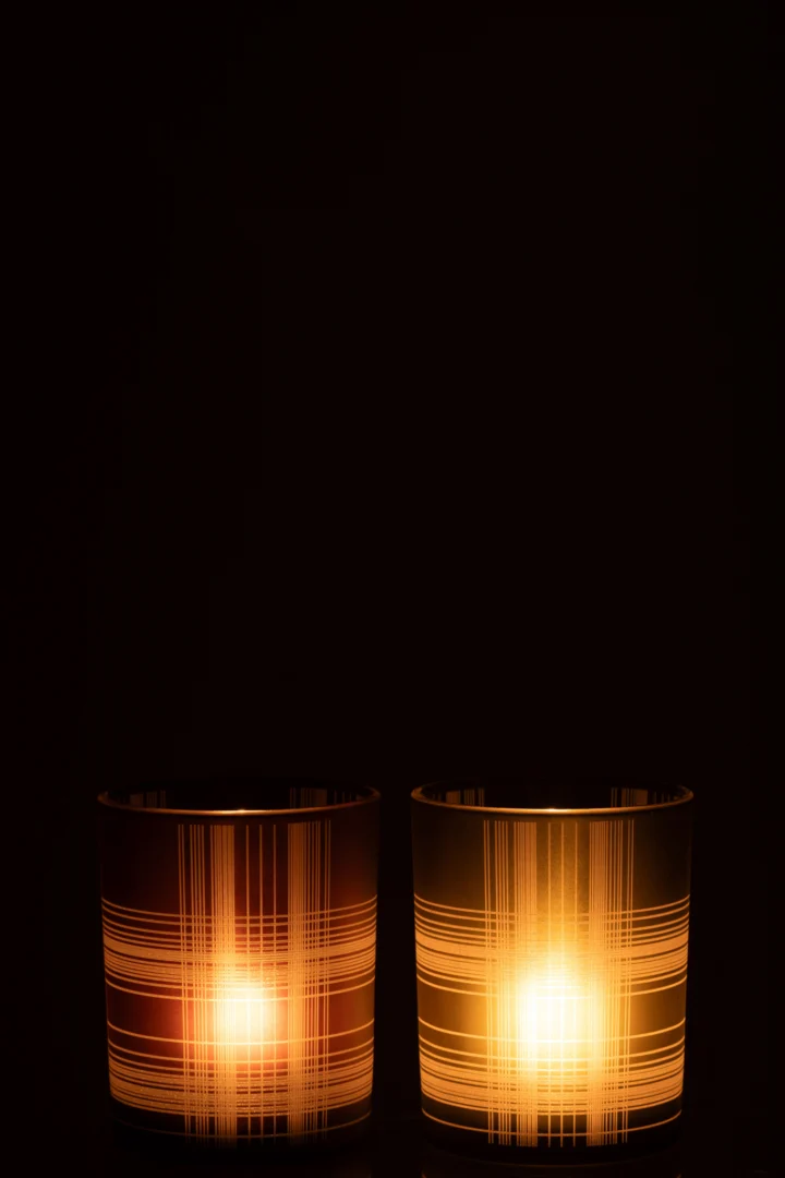 A: Ja, deze glazen kaarsenhouders zijn geschikt voor theelichtjes en kleine kaarsen; het gekleurde glas verzacht het licht en creëert een warme gloed, maar plaats ze altijd op een hittebestendige, vlakke ondergrond en laat brandende kaarsen nooit onbeheerd.