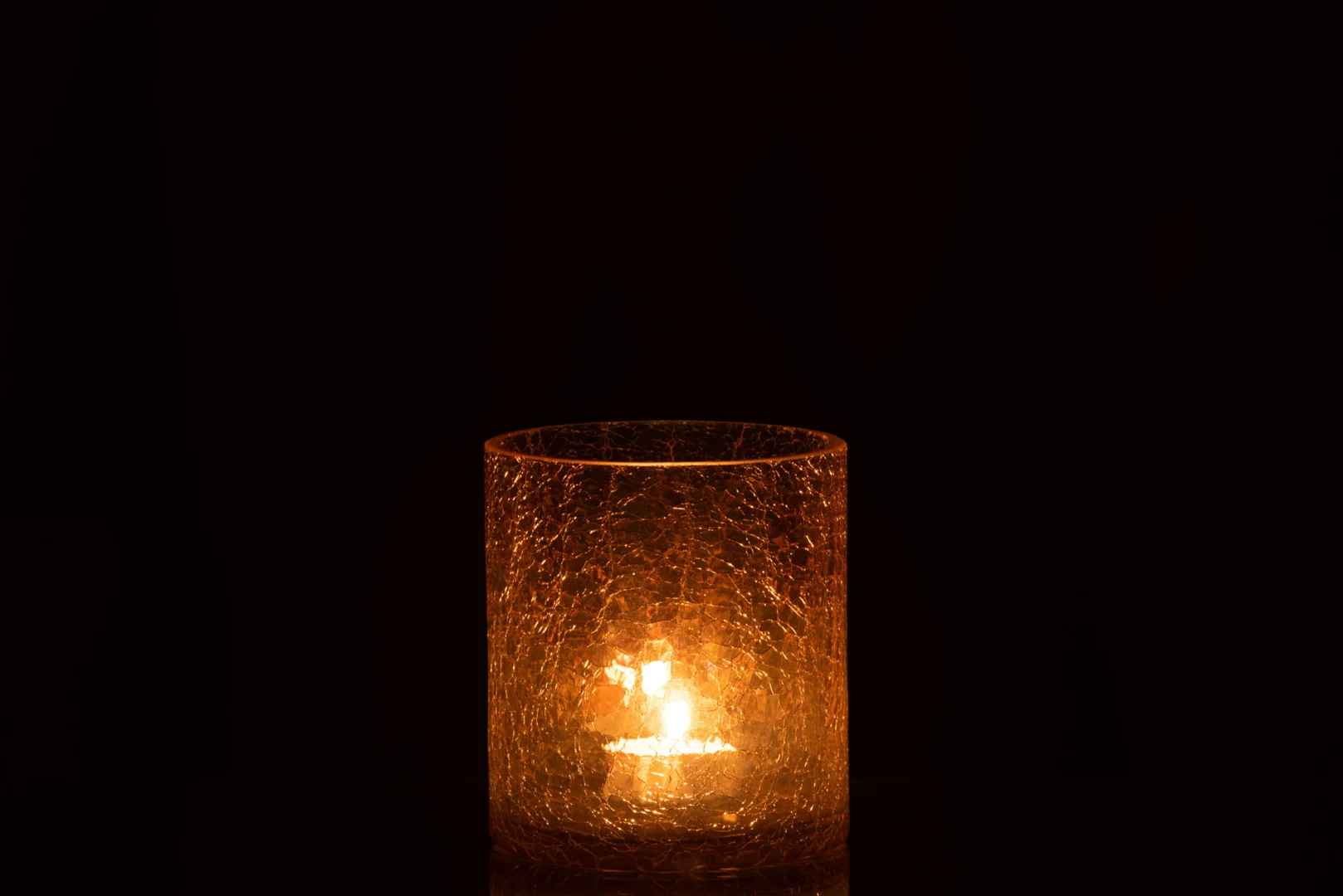 Geeft een warme sfeer met zijn amberkleurige glas, ideaal voor gezellige avonden; klein formaat beperkt grotere kaarsen.
