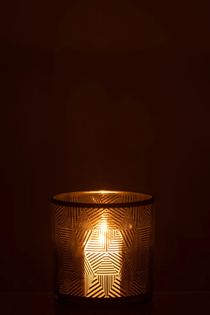 Stabiel glazen windlicht dat sfeervol licht verspreidt; minder geschikt voor kleine oppervlaktes. Ideaal voor liefhebbers van warme accenten.