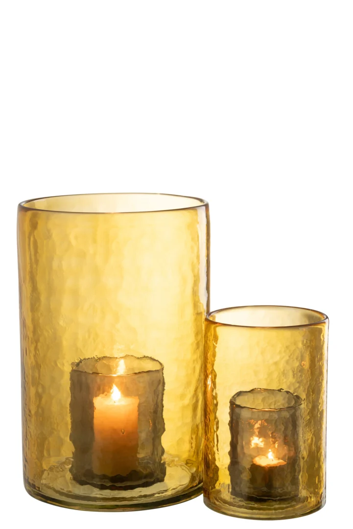 Deze kaarsenhouder brengt direct warme sfeer op een gedekte tafel of in een hoek van de woonkamer. Het stevige, dubbelwandige glas in helder geel oogt luxe en veilig. Wel wat groot voor kleinere ruimtes. Ideaal voor liefhebbers van opvallend glaswerk. Aanrader.