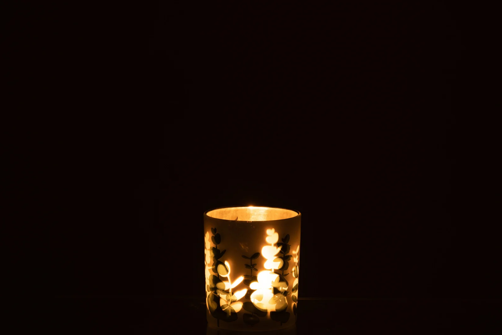 Kleine kaarsenhouder van glas, geschikt voor sfeerlicht; decoratief, maar beperkt zichtbaar effect bij fel daglicht.