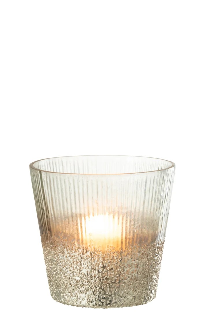 Kaarsenhouder Orkaan Geribbeld Glas Zilver Groot