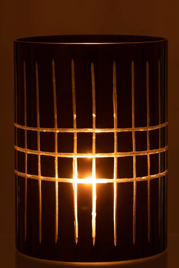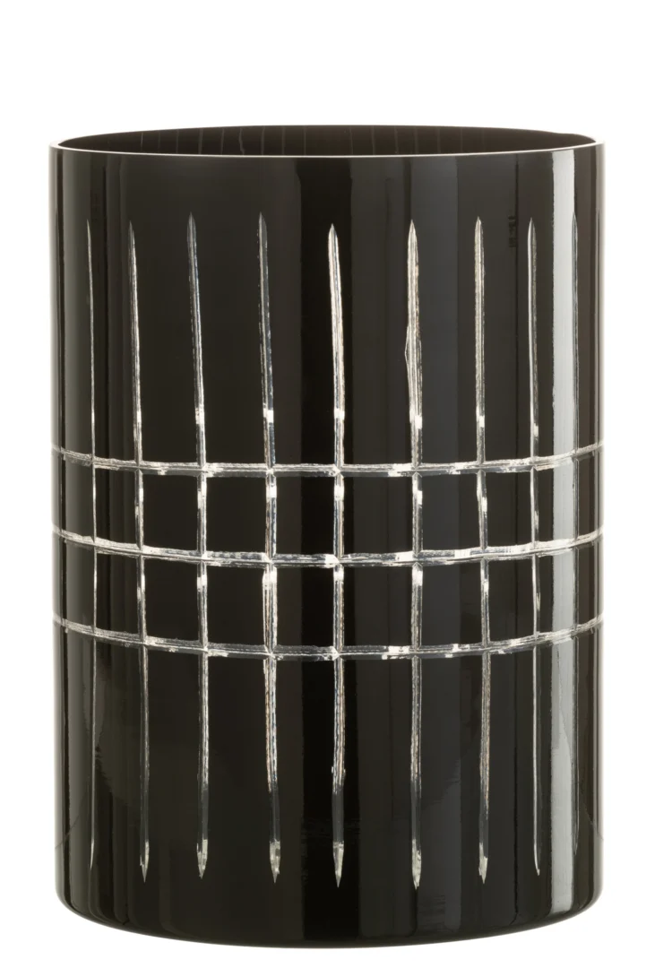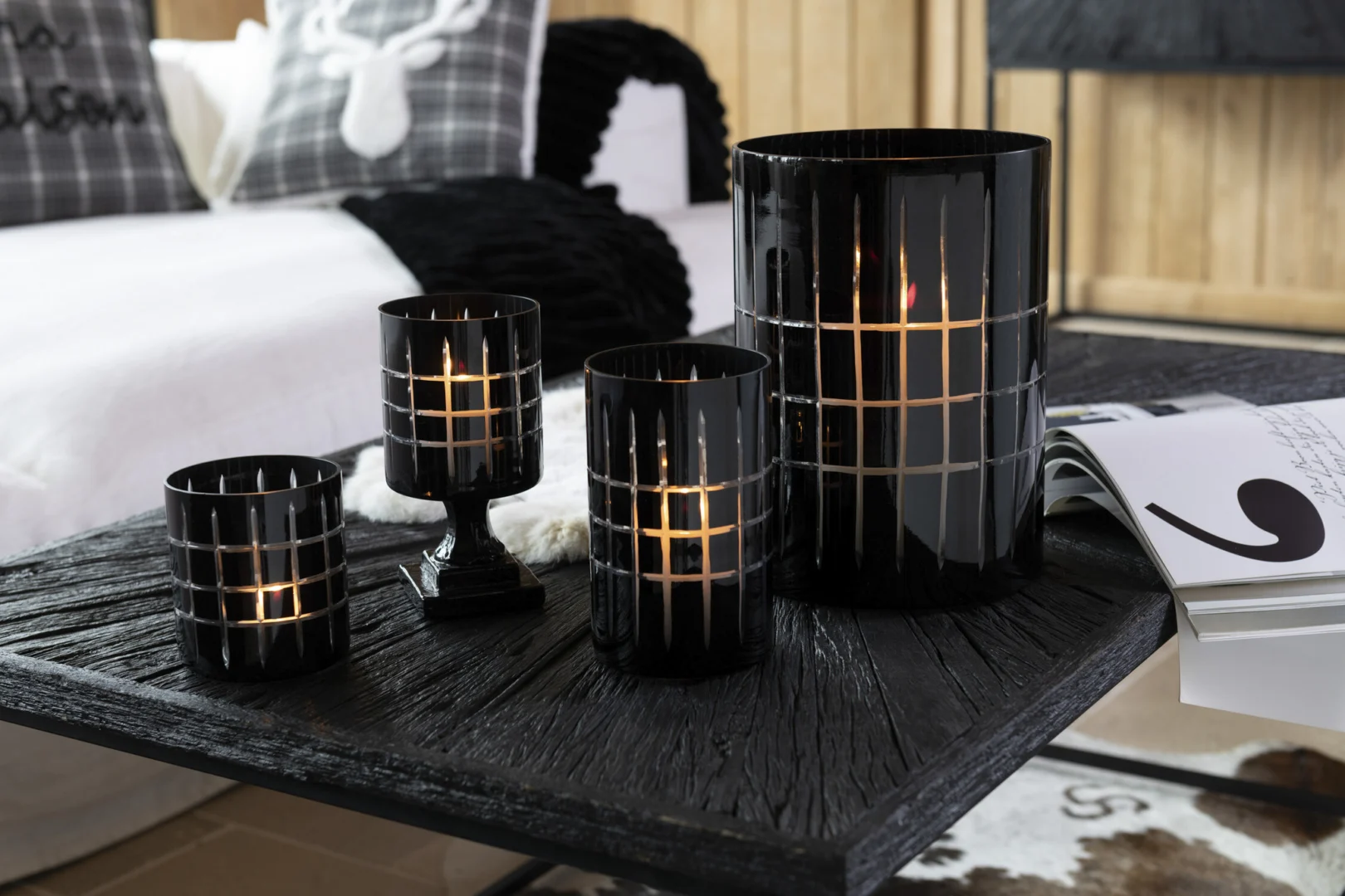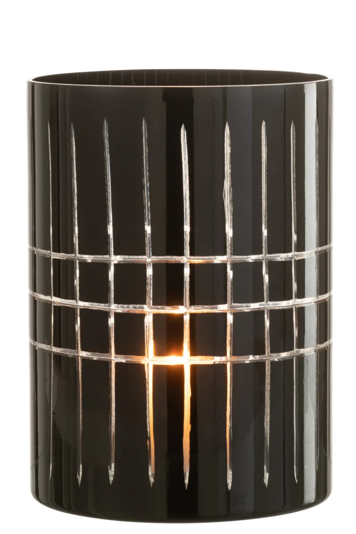 Kaarsenhouder Orkaan Geruit Glas Zwart Groot