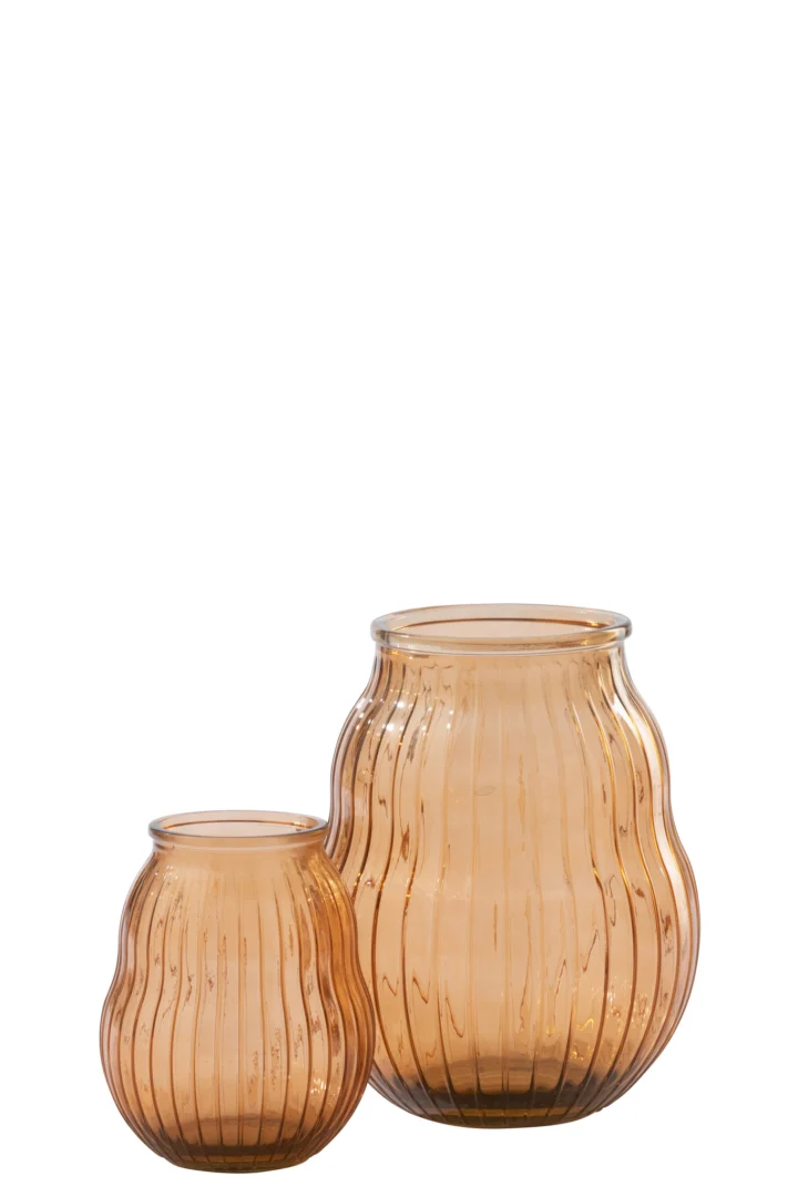 Deze glazen kaarsenhouder past goed op een gedekte zomertafel of een vensterbank met avondlicht. Het dikwandige glas voelt stevig aan en het oranje strepenpatroon zorgt voor warme gloed. Reinigen vereist wel enige voorzichtigheid. Geschikt voor liefhebbers van sfeervolle details.