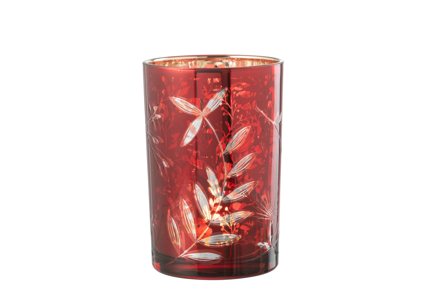 Deze theelichthouder op voet bladeren rood goud voegt niet alleen een vleugje charme toe, maar is ook perfect voor het creëren van een warme sfeer tijdens koude winteravonden. Plaats er een kleurrijke theelicht in en geniet van het sfeervolle licht dat door het glas straalt. Combineer hem met andere decoratieve elementen voor een gezellige uitstraling in je interieur.