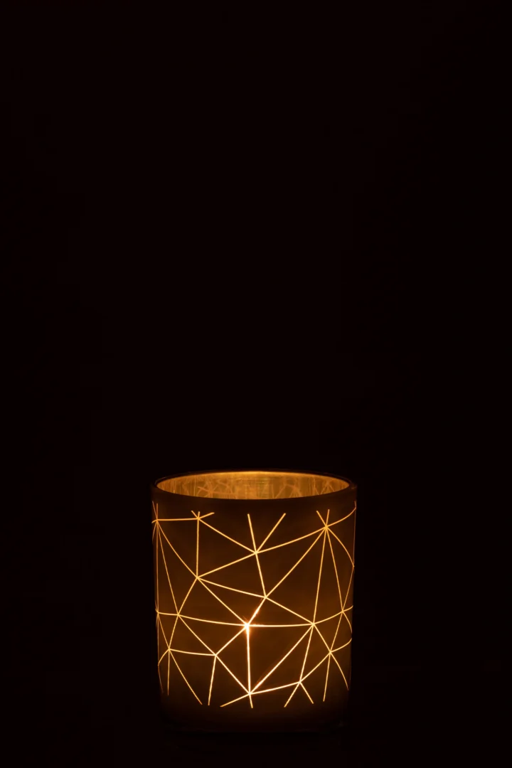 Geniet van warme sfeer met deze stijlvolle glazen houder uit de Hiver 2023-collectie; 100% glas in een goud/wit mix vangt het kaarslicht prachtig. Afmetingen 10 bij 10 bij 12,5 centimeter, gewicht 0,525 kg. Ideaal voor theelichtjes op salontafel of vensterbank.