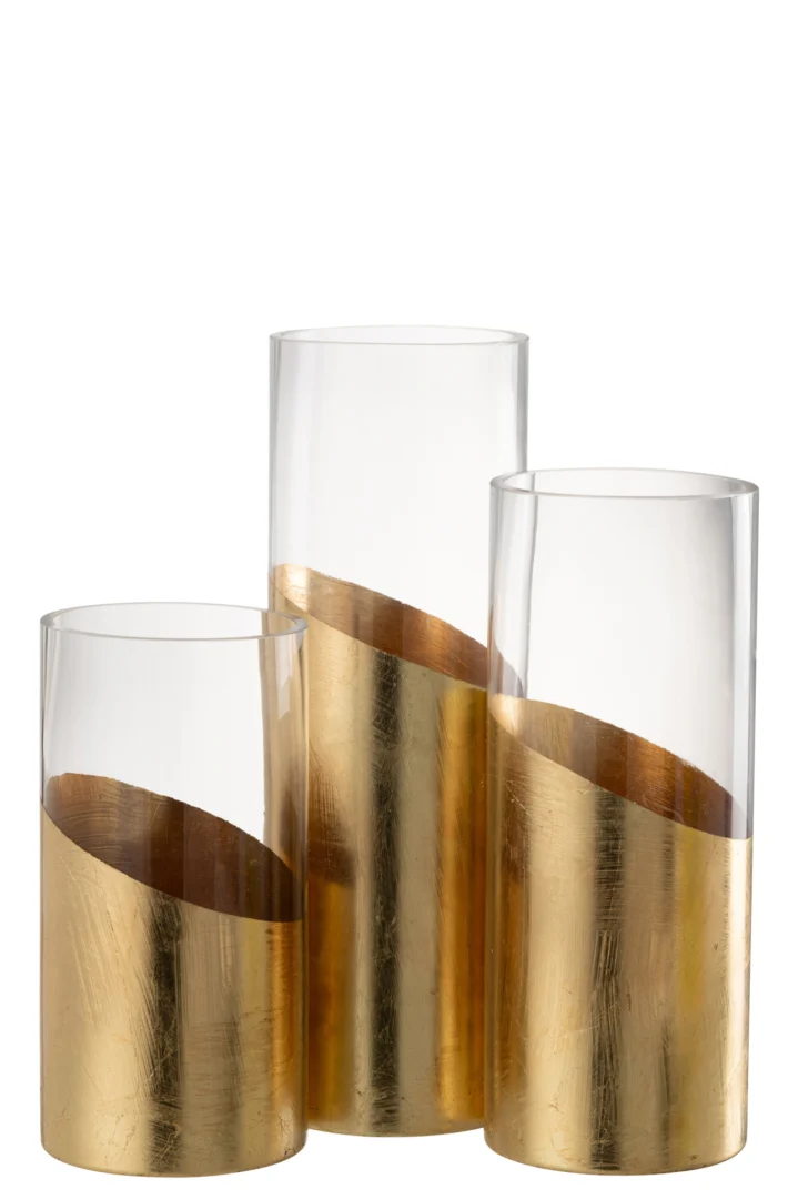 Tijdens een rustig diner zorgt dit grote, glazen windlicht voor sfeervol, warm licht. Het goudkleurige glas reflecteert subtiel, terwijl het slanke ontwerp weinig ruimte inneemt. Minder praktisch bij kleine oppervlakken vanwege de hoogte. Ideaal voor liefhebbers van stijlvol minimalisme. Een decoratief, doch functioneel accent.