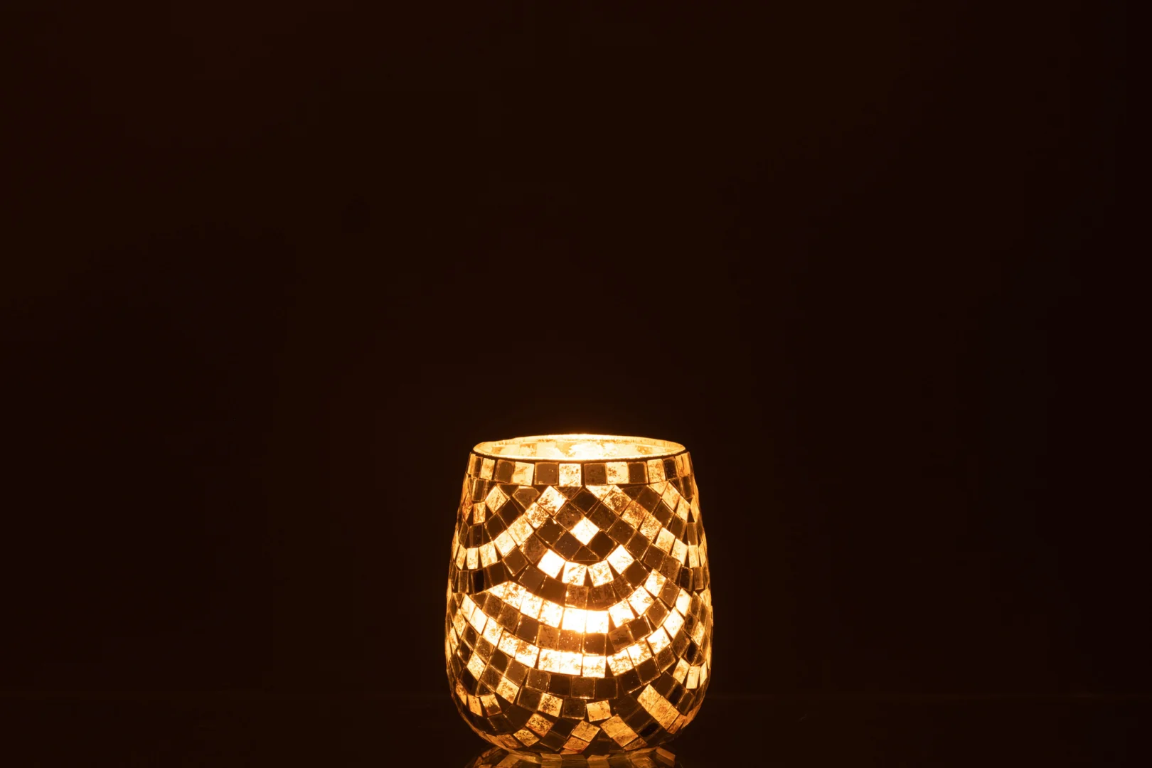 Kaarsenhouder Orkaan Mozaïek Glas Zilver Goud Medium