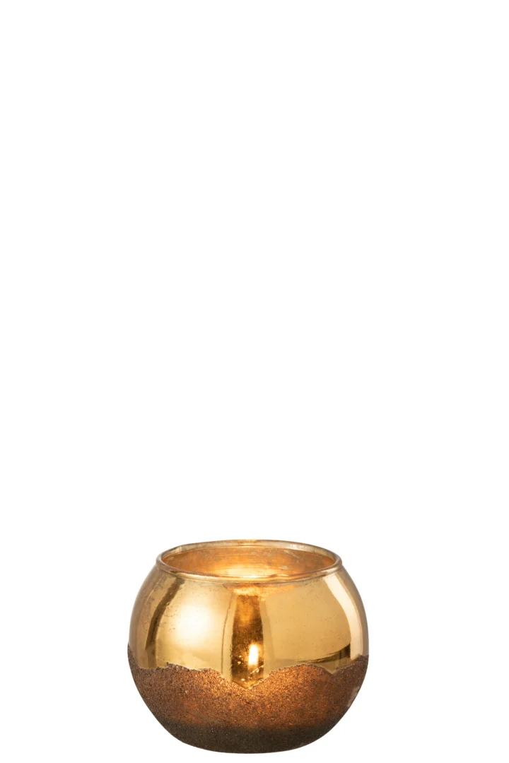 Breng warme sfeer in huis met deze goudkleurige kaarsenhouder van glas. De subtiele glans vangt het licht prachtig op en maakt elke avond net wat gezelliger, zonder te overheersen op je tafel of dressoir.