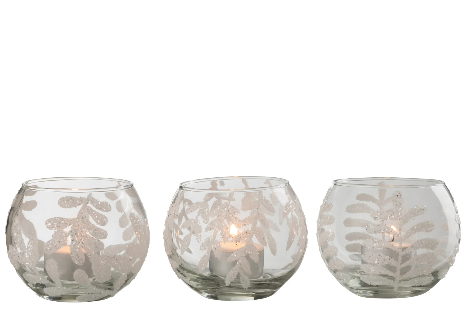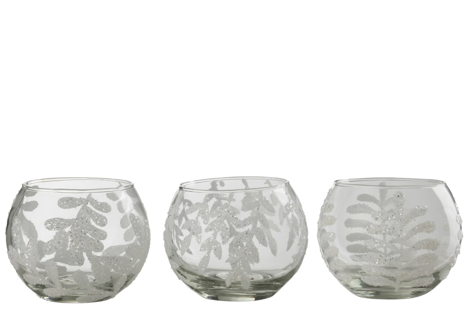 Kaarsenhouder Orkaan Pailletten Glas Wit Set 3