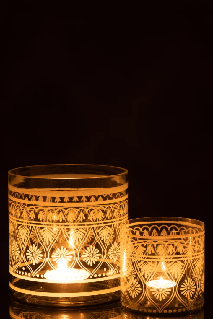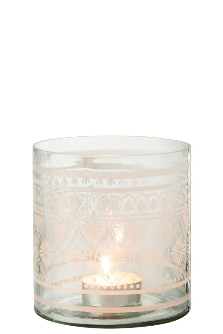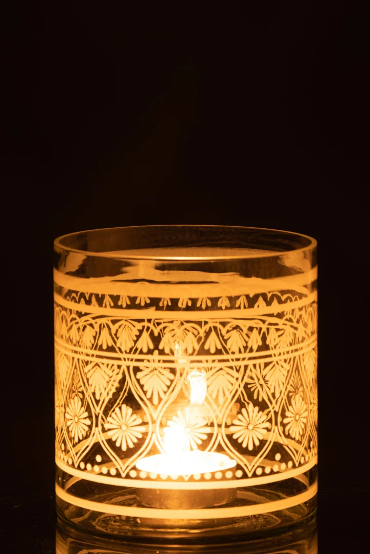 Bij een rustige zomeravond op het balkon zorgt deze glazen kaarsenhouder voor sfeervol licht. Het transparante patroon reflecteert warm en elegant. Past in elk interieur. Wel wat breekbaar, dus oppassen bij verplaatsen. Ideaal voor liefhebbers van subtiele, stijlvolle decoratie. Aanrader.