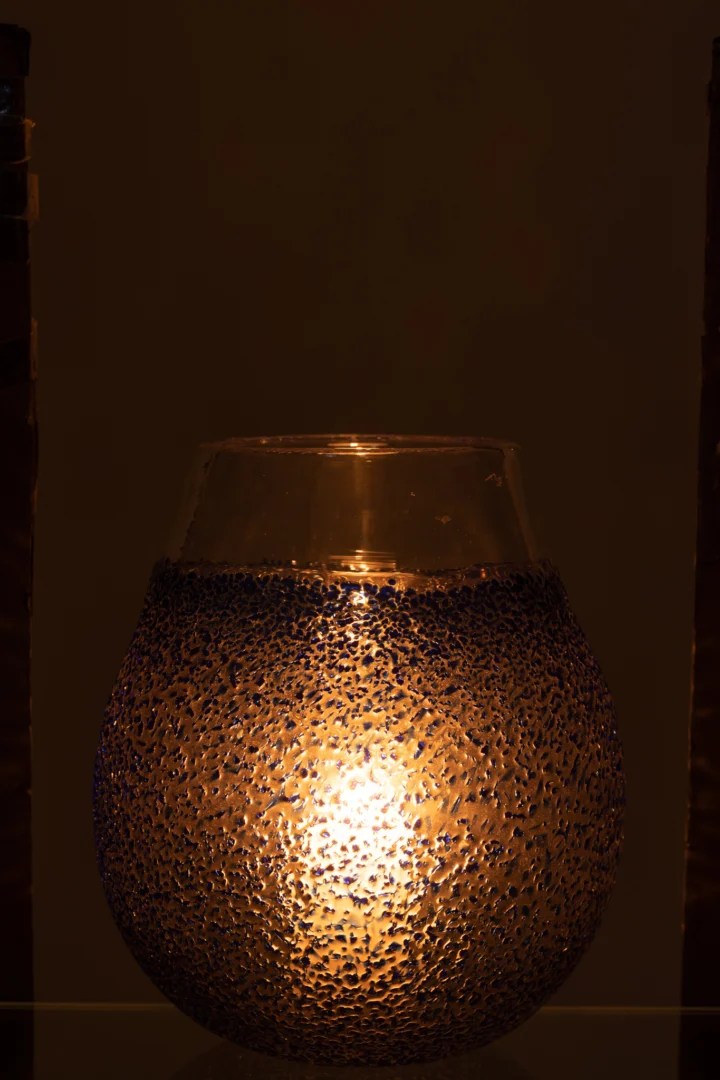 De glazen wand verzacht de vlam en zorgt voor een knusse, sfeervolle gloed tijdens etentjes, me-time of gezellige avonden. Dankzij het stevige gewicht blijft hij stabiel, ook op een overdekt terras. Combineer met andere blauwe accenten voor een harmonieuze look of mix met naturel tinten voor een fris contrast.