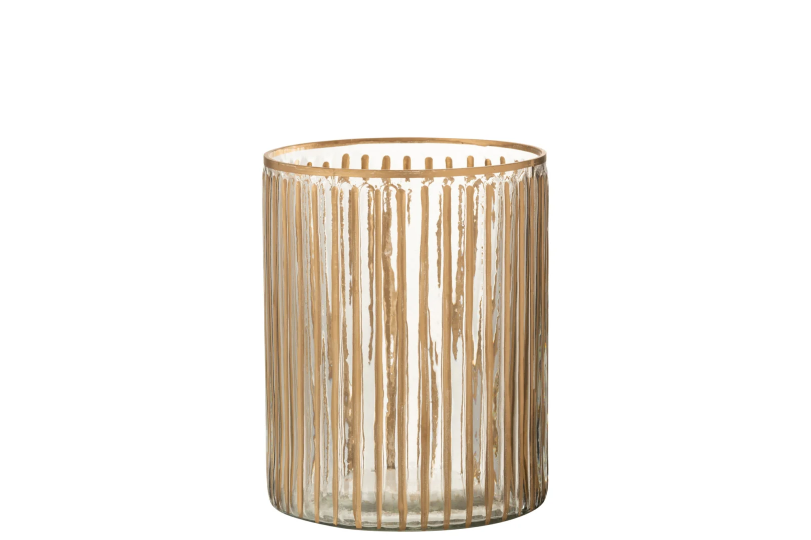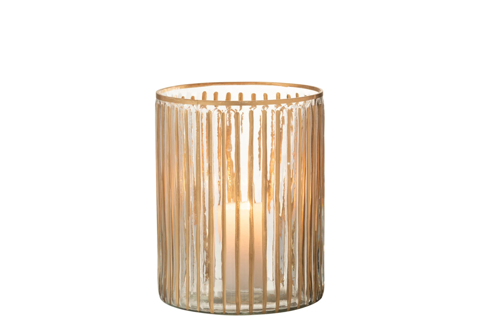 Breng meteen warmte en glans in huis met deze elegante glazen kaarsenhouder in een chique goudtint. Perfect om je interieur een sfeervolle upgrade te geven, van eettafel tot vensterbank.
