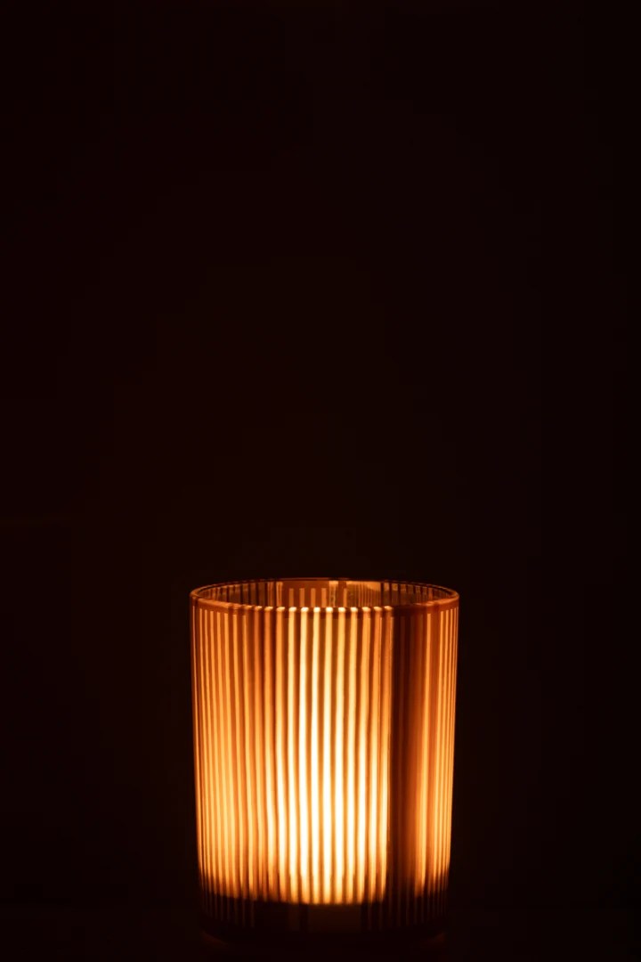 Kaarsenhouder Orkaan Strepen Glas Bruin Wit Medium
