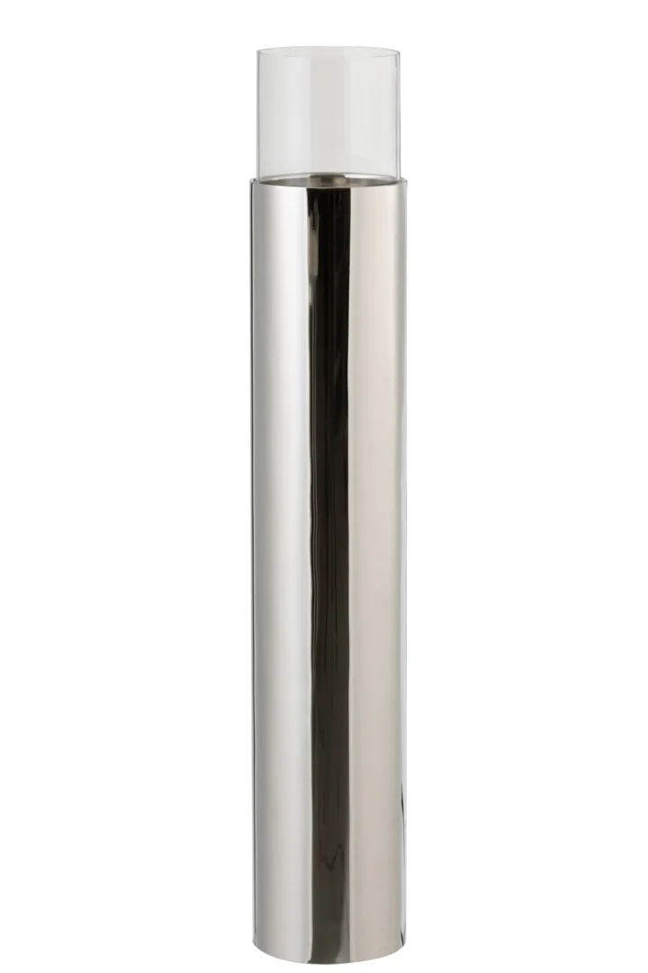 Breng warmte en glans in huis met deze hoge, zilverkleurige kandelaar van 70 cm. Een elegante blikvanger die moeiteloos sfeer toevoegt aan je eettafel, dressoir of hal.